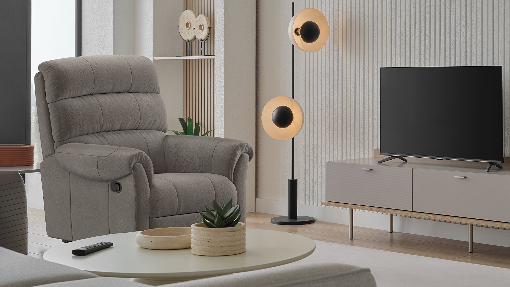 Кресло-реклайнер Arizona, выделяющееся функциональными деталями, упрощающими повседневную жизнь, привносит в интерьер эргономичный дизайн высшего уровня. Ручная регулировка сиденья и спинки, конструкция из первоклассного дерева и эластичные наполнители обеспечивают комфорт и безупречное качество.