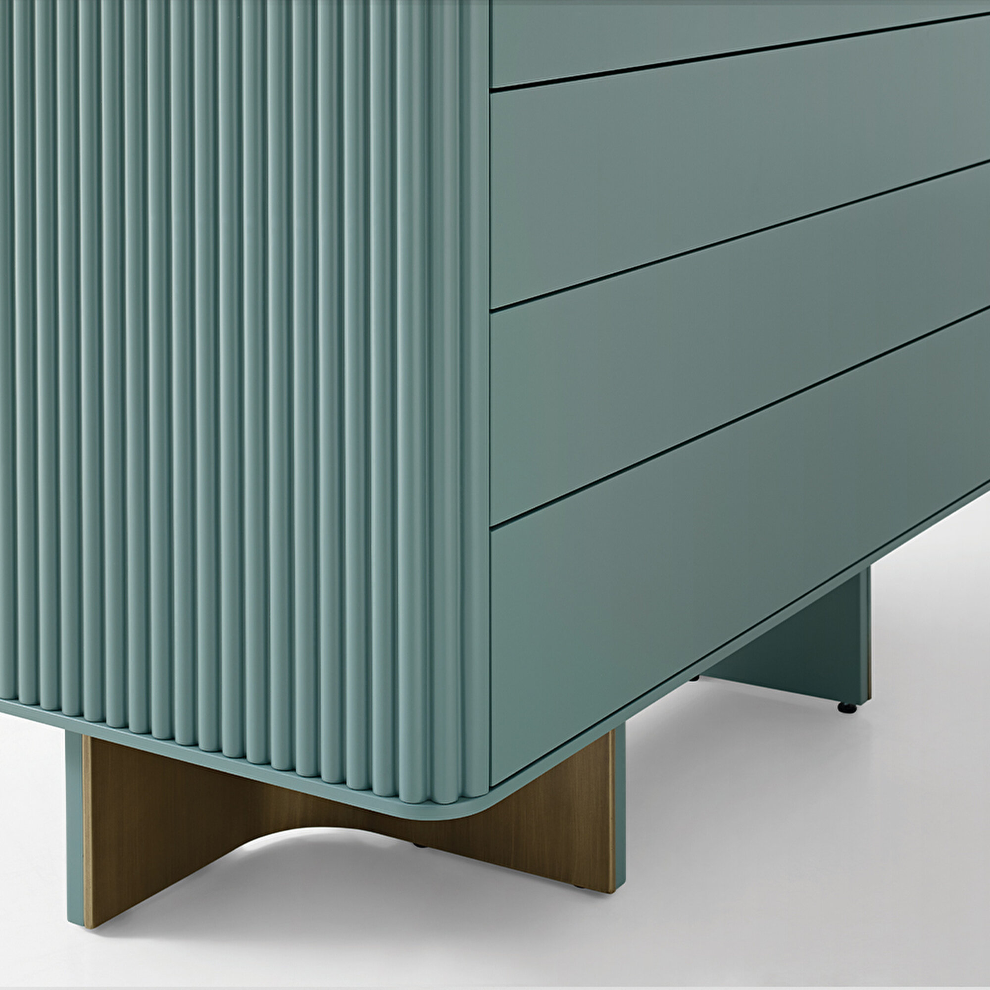 Комод Athens из коллекции Visions выделяется своим современным стилем и неподвластным времени дизайном. Он привлекает внимание и завершает общую эстетику серии благодаря ножкам в оттенке состаренной бронзы.