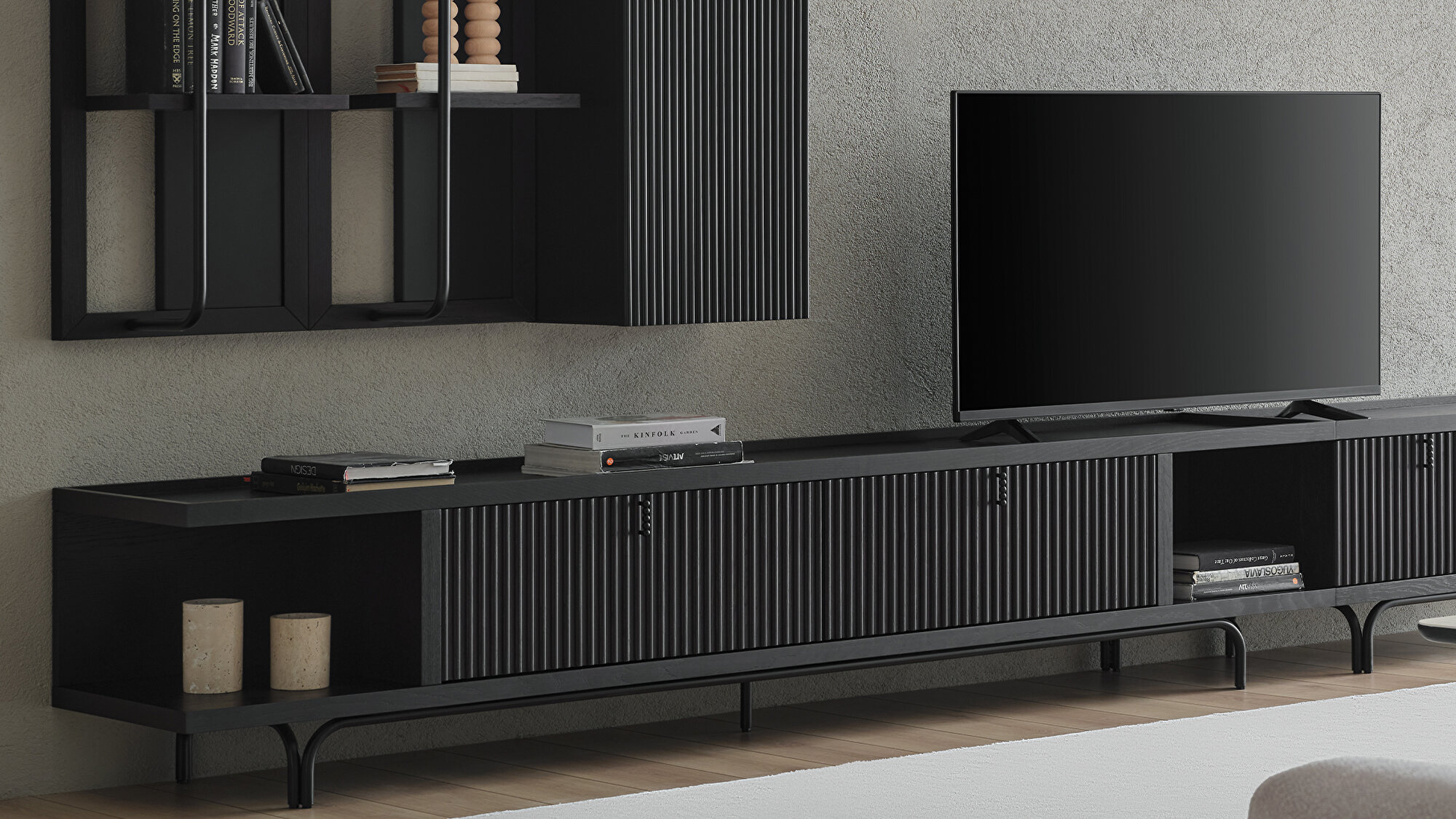 Богатство дизайнерской свободы ТВ-стеллаж Austin привлекает внимание своей дизайнерской свободой, предлагая два варианта — большой и малый. В качестве цветовых опций доступны тёмный и светлый дуб, что позволяет адаптировать стеллаж под любой интерьер.