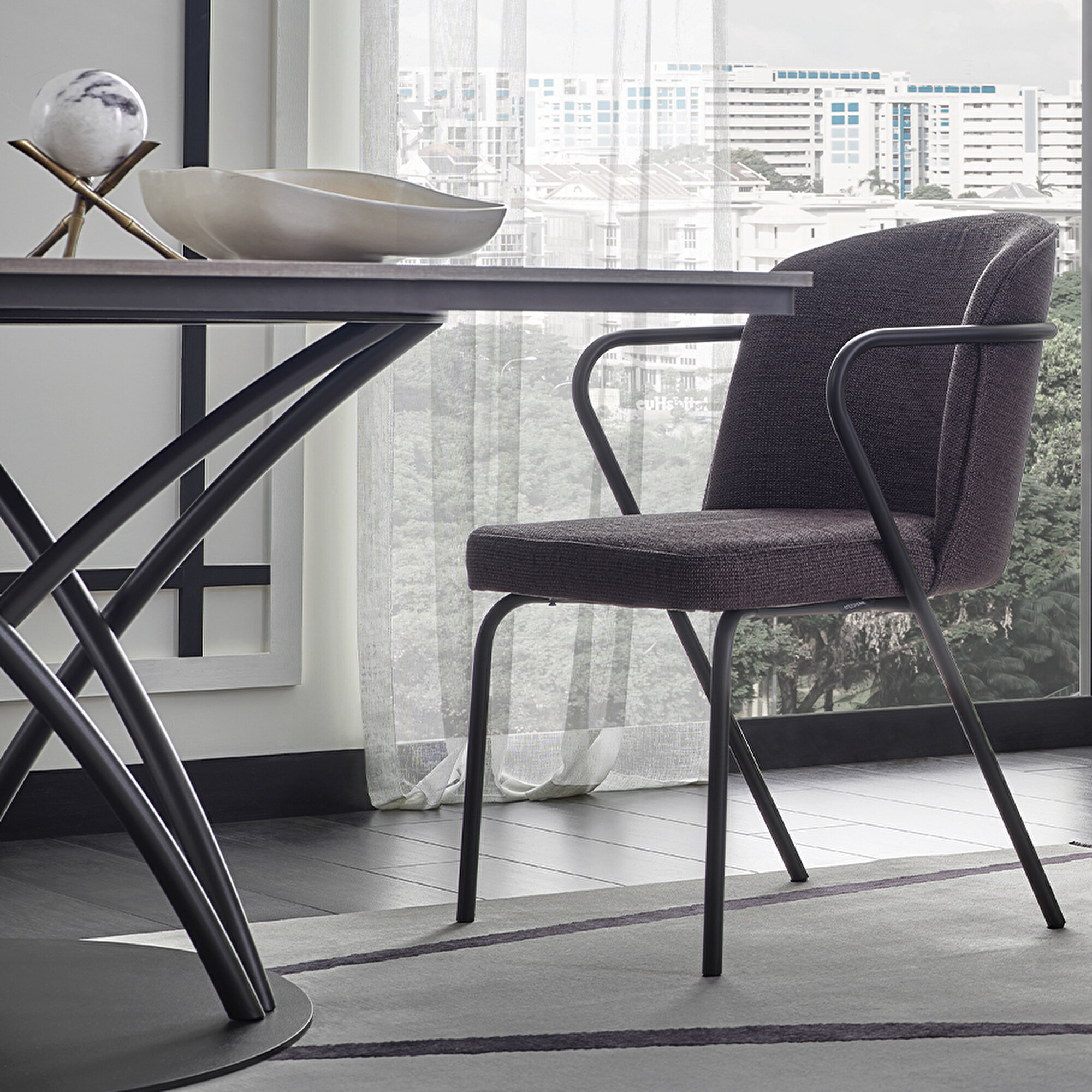 Металлические ножки Cтол Berta сочетает эстетику и функциональность благодаря изящным дизайнерским деталям. Уникальная для Enza Home поверхность с текстильной фактурой и металлическими эффектами привносит в интерьер особую эстетичность, а металлические ножки подчеркивают современный стиль с акцентом на высококачественные детали.