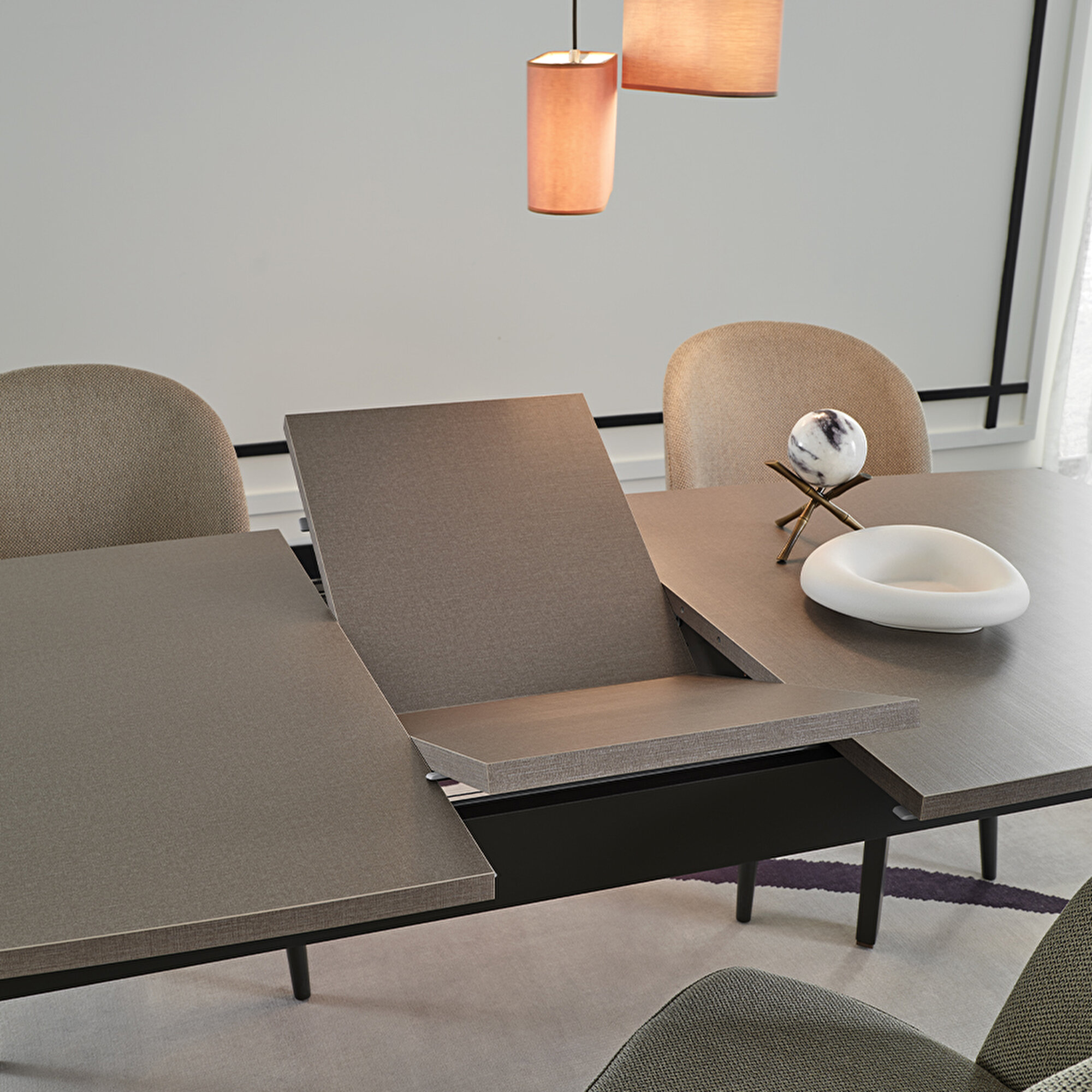 Изысканный вид Раздвижной стол Berta с современным и функциональным дизайном сочетает высокий эстетический уровень. Текстильная отделка с металлическим эффектом, эксклюзивная для Enza Home, придаёт столу изысканную элегантность. Элипсообразная верхняя панель добавляет уникальности и привносит в интерьер стильную современную интерпретацию.
