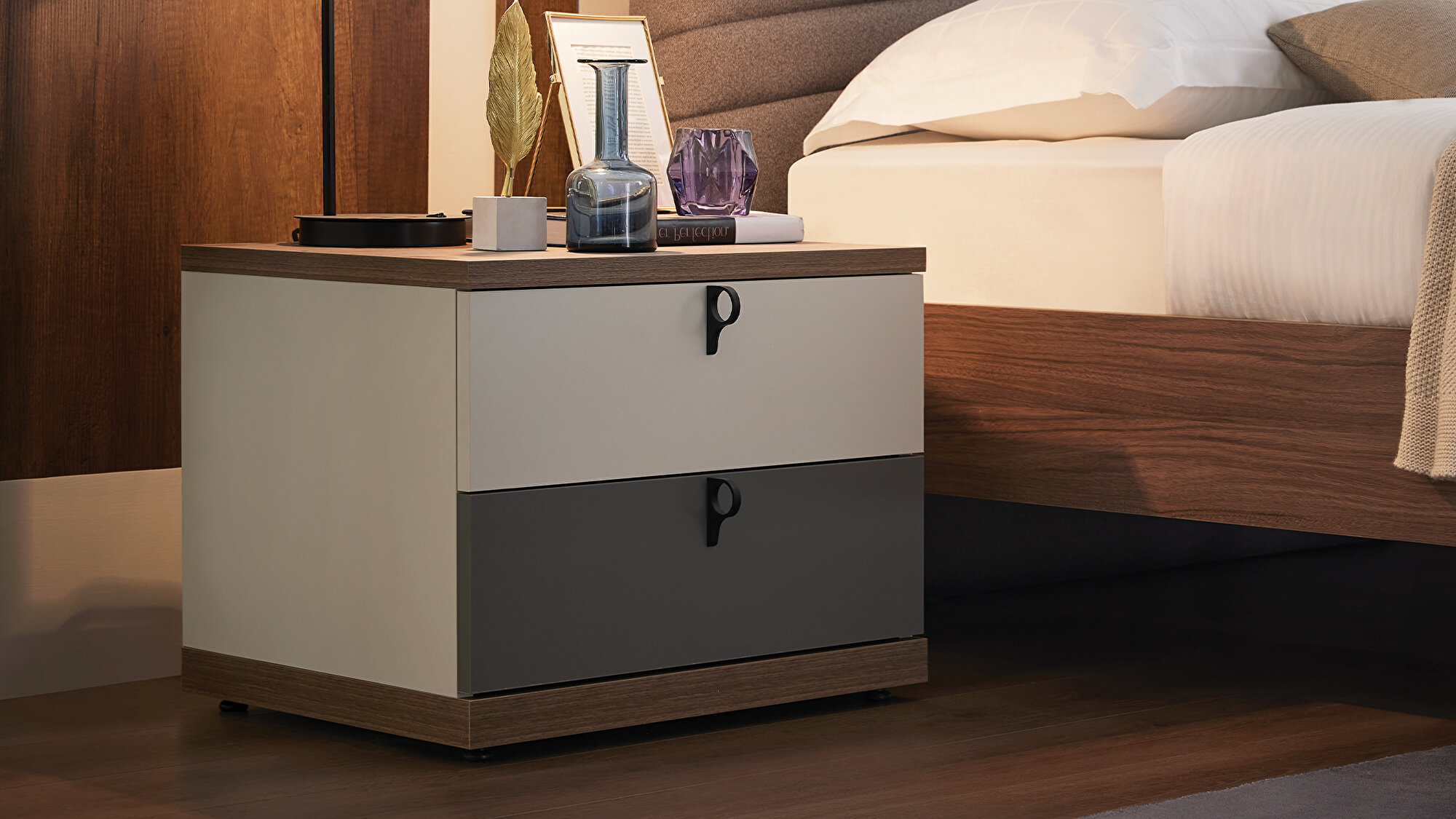 Прикроватная тумбочка Cordell, выделяющаяся мягкими цветовыми переходами, становится отличным выбором для современного интерьера. Сочетание орехового, серого и слоново-белого цветов отражает спокойные и элегантные линии дизайна.