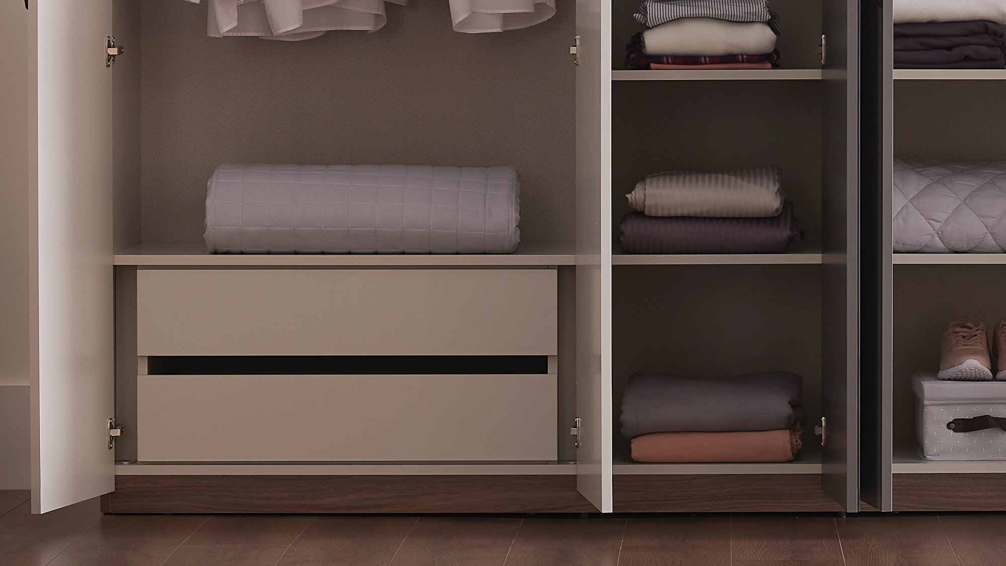 Внутренний модуль выдвижного ящика шкафа Cordell, который идеально дополняет шкафы серии Cordell с 3 и 5 дверями, выделяется своей функциональностью и решает проблему нехватки ящиков.
