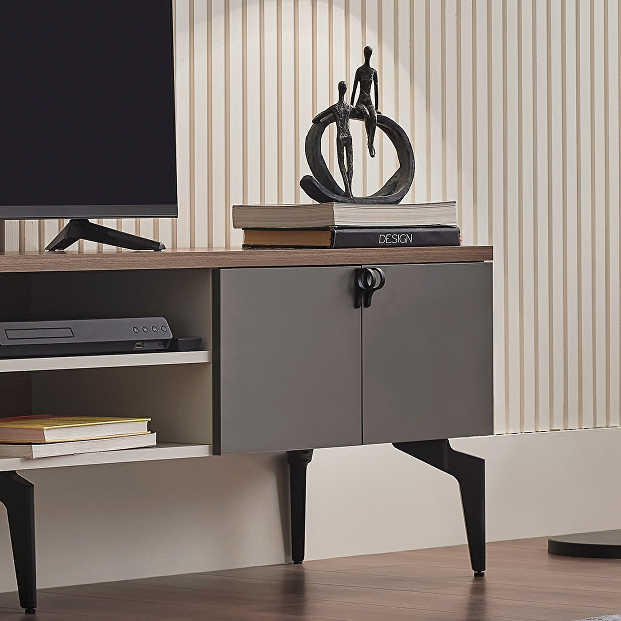 Дизайн, обогащённый переходами цветов ТВ-стеллаж Cordell, с уникальным сочетанием оттенков орехового, серого и слоновой кости, придаёт пространству светлый и воздушный вид, создавая гармонию и уют в интерьере.