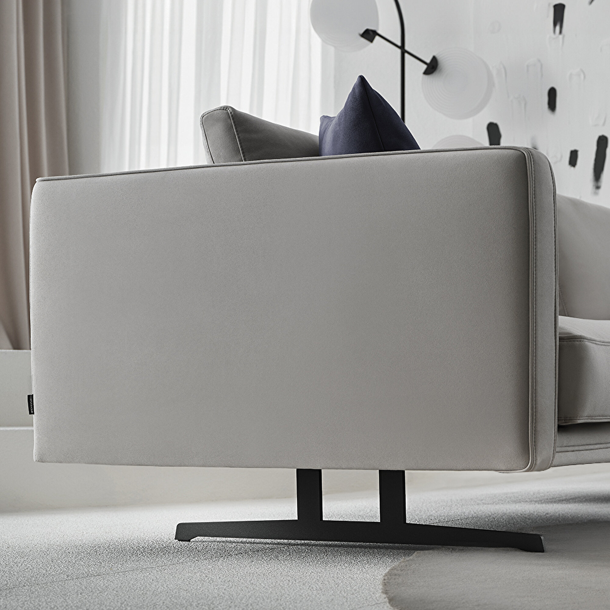 Долговечное использование Диван Dakar благодаря металлической конструкции и прочному каркасу обеспечивает долгосрочное использование. Высокие металлические черные ножки добавляют изысканности в дизайн и позволяют использовать диван в различных декорациях.