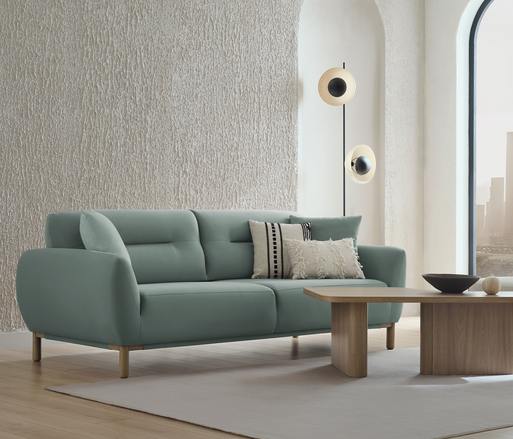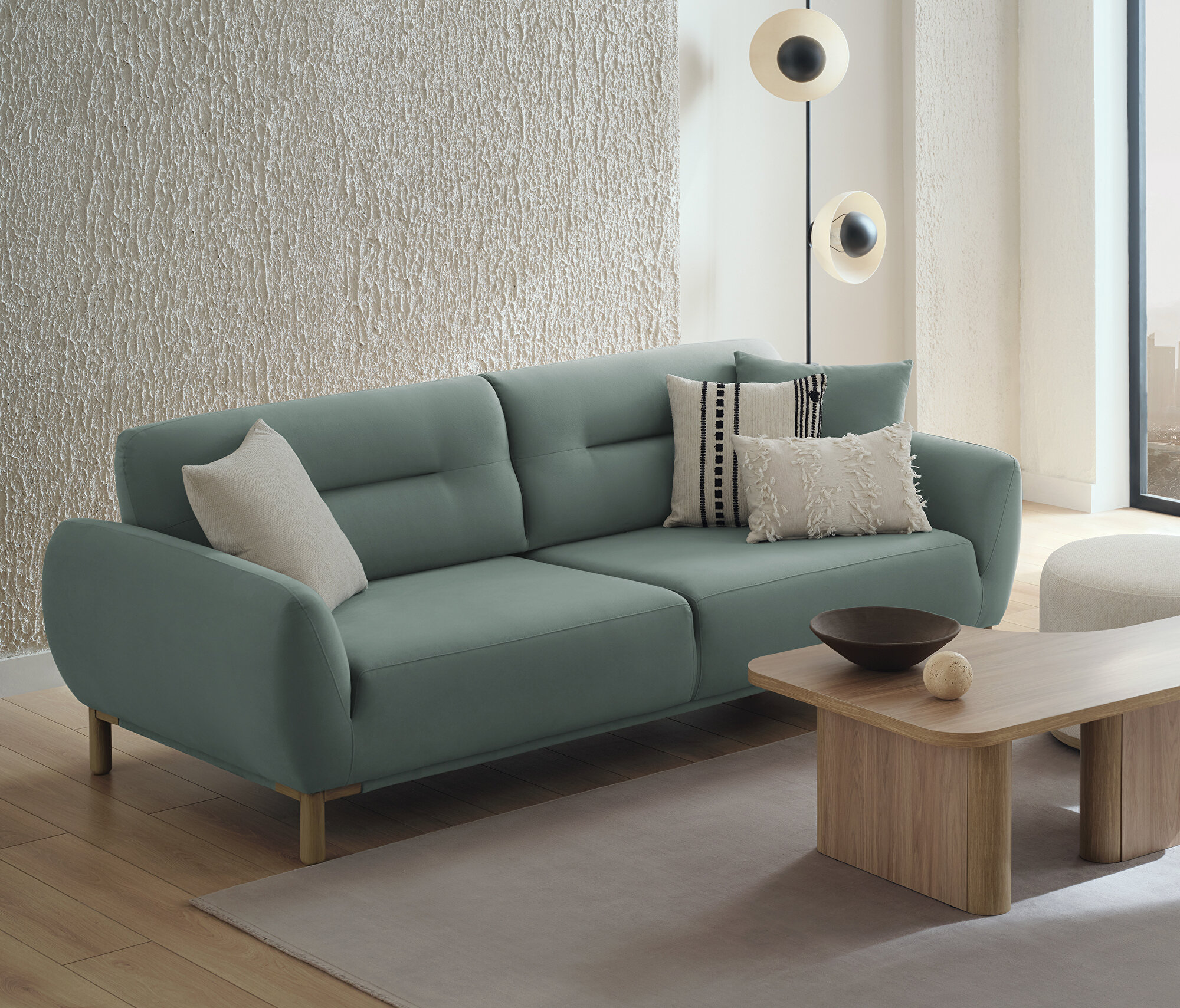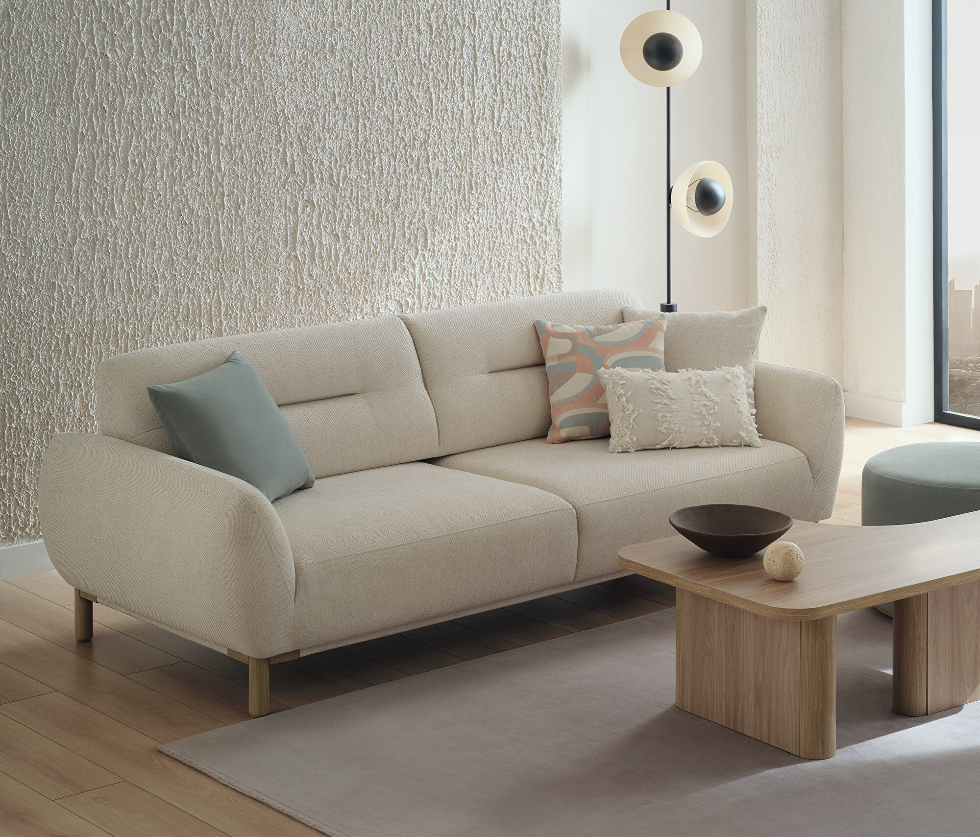 Трёхместный диван, Замшевая фактура, 12503 Кремовый