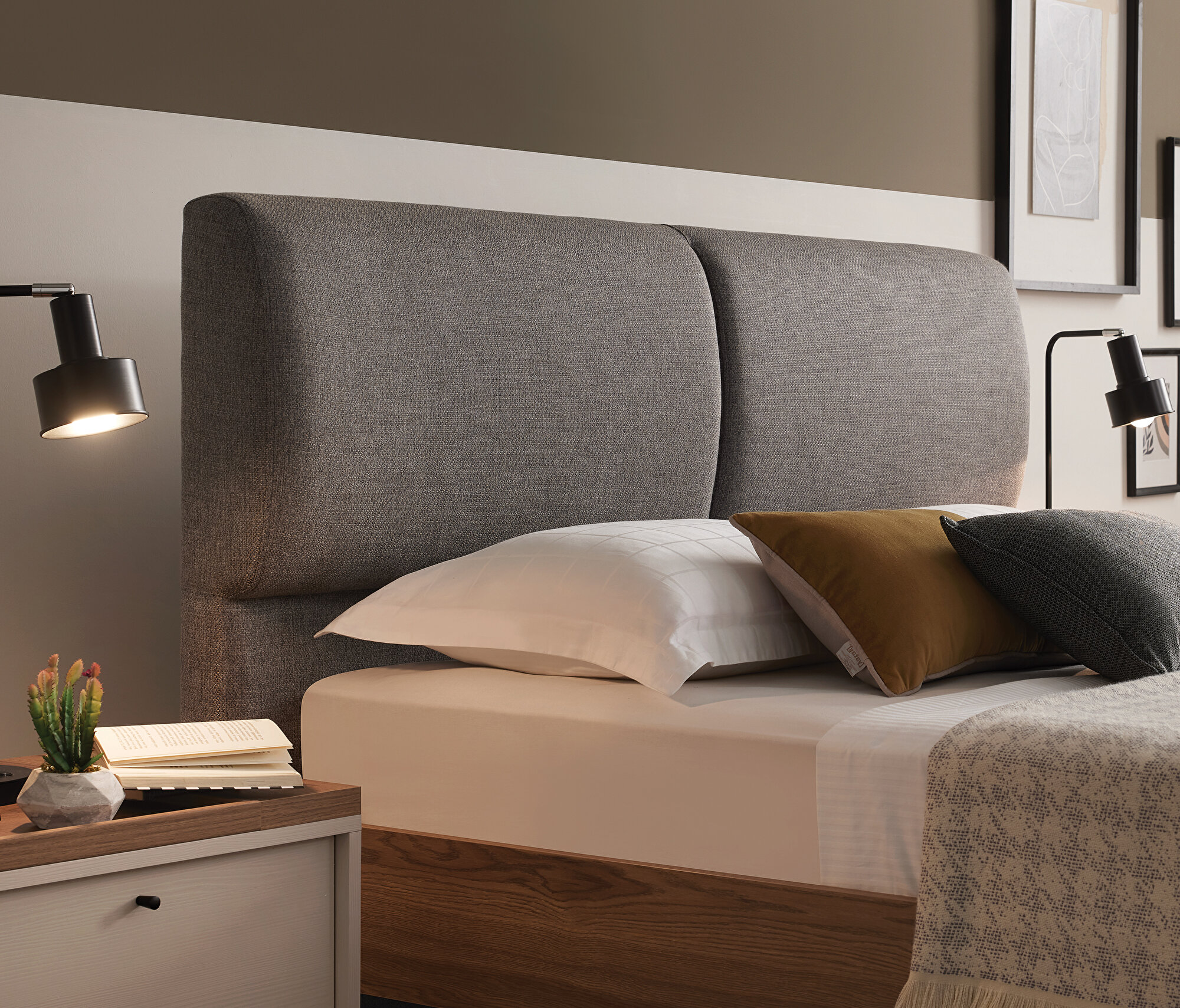 Основание кровати с изголовьем, (180x200 см), 11804 Серый Льняная текстура