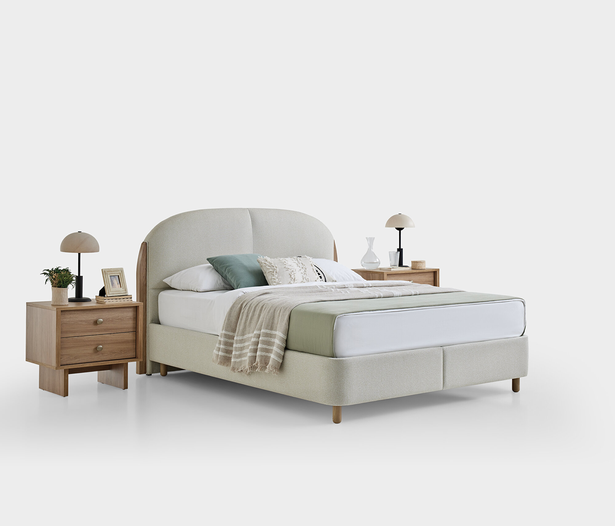 Основание кровати с ящиком и изголовьем, (200x200 см), 17601 Бежевый