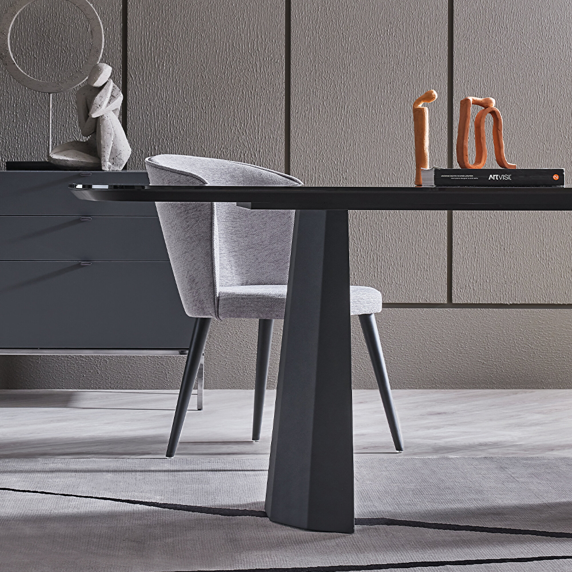 Стол Legato привлекает внимание своим современным, динамичным дизайном с молодежным акцентом. Монохромная палитра прекрасно вписывается в любые интерьерные концепции, а скульптурные металлические ножки и мраморный рисунок на поверхности придают элегантность и уют. Этот стол вмещает 8 человек и благодаря оптимальным размерам идеально подходит для приема гостей.