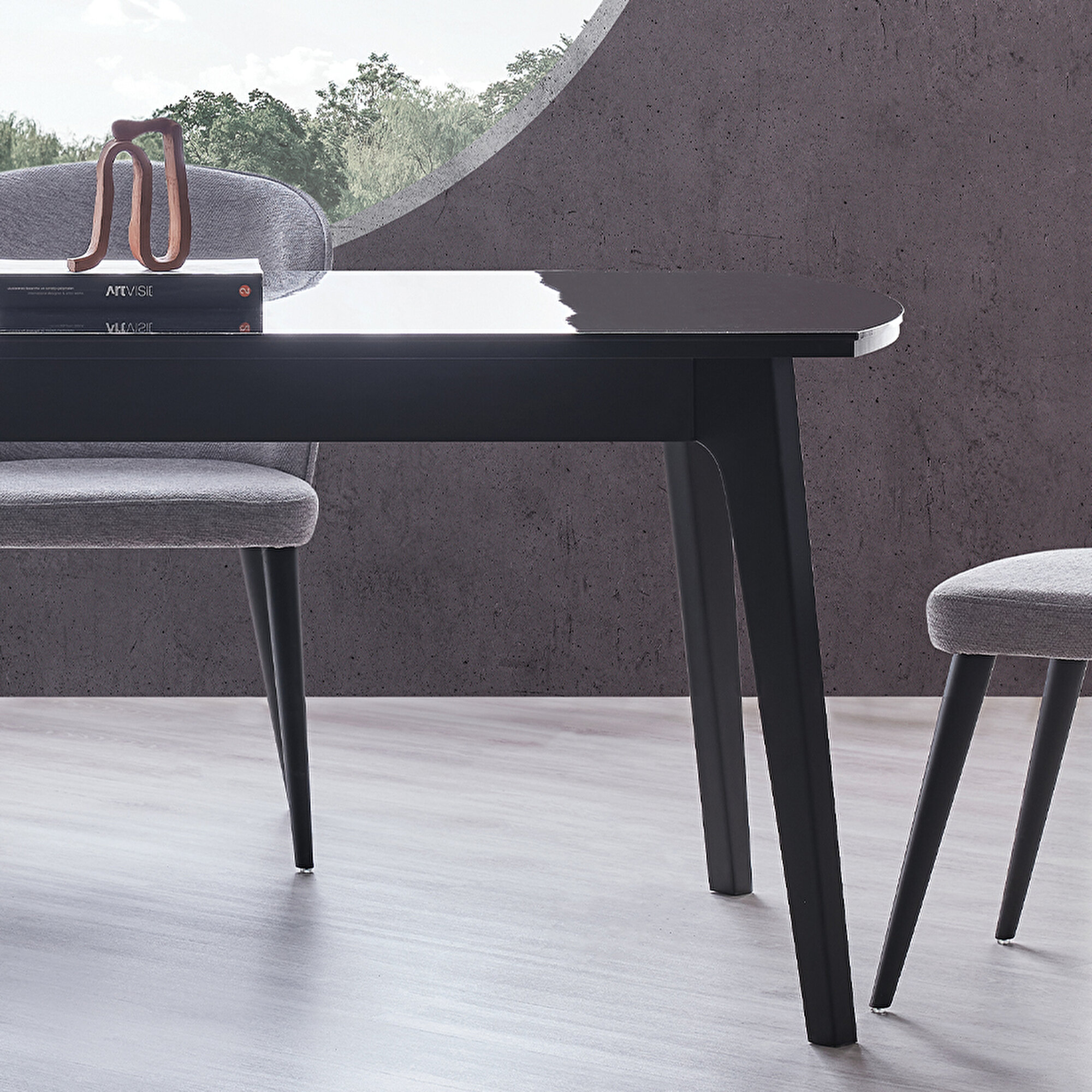 Простой и изысканный дизайн Раздвижной стол Legato привлекает внимание минималистичными деталями и черными деревянными ножками, создающими контрастную элегантность на светлых поверхностях. Черные деревянные ножки придают дизайну простоту и стиль, идеально завершая общий стиль декора.