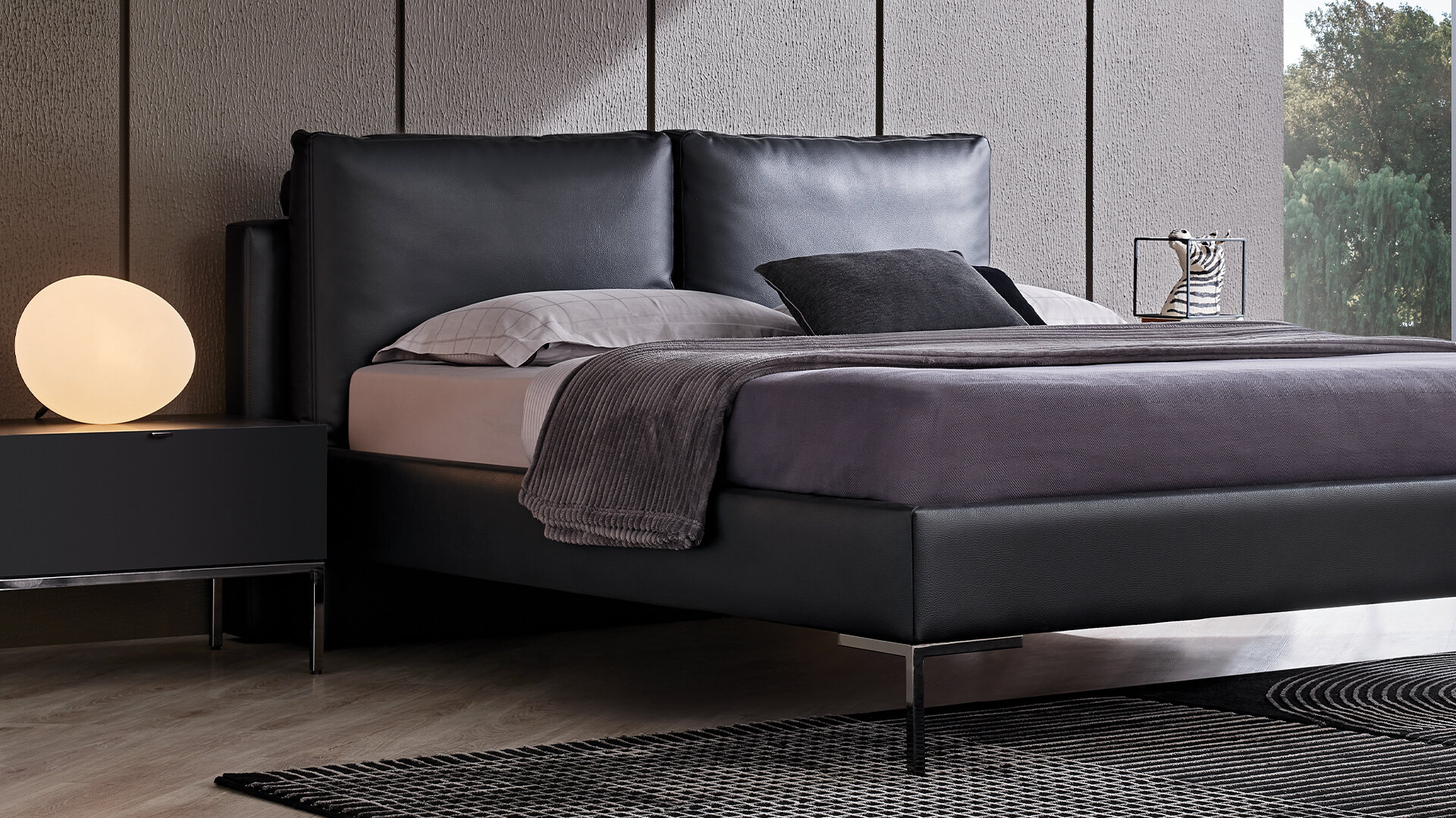 Гармоничный и элегантный вид Основание кровати с изголовьем Legato с графитовыми металлическими ножками, вдохновленное современным индустриальным стилем, идеально вписывается в стильные и сбалансированные интерьеры. Мягкая тканевая обивка дополняет комфортную атмосферу, подчеркивая элегантность дизайна.