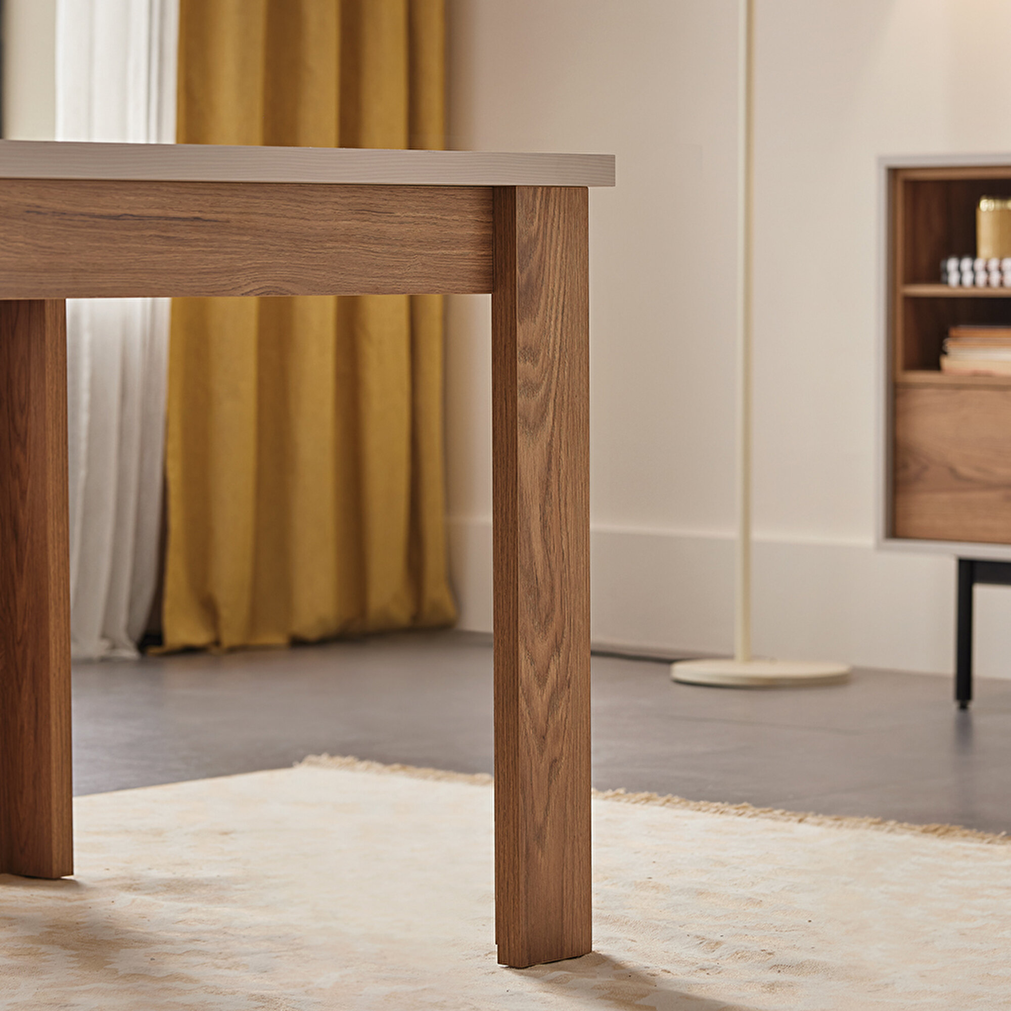 Дизайн ножек, отражающий теплоту дерева Раздвижной стол Loreto, благодаря своей глубокой текстуре поверхности, подчеркивает естественность и гармонично вписывается в коллекцию. Детали деревянных ножек, добавляющие элегантности, создают тёплую атмосферу в интерьере.