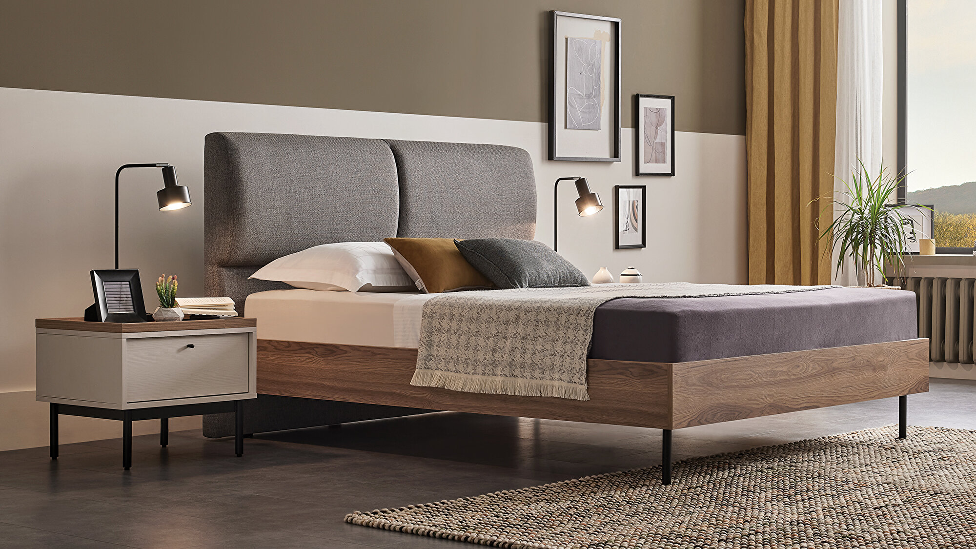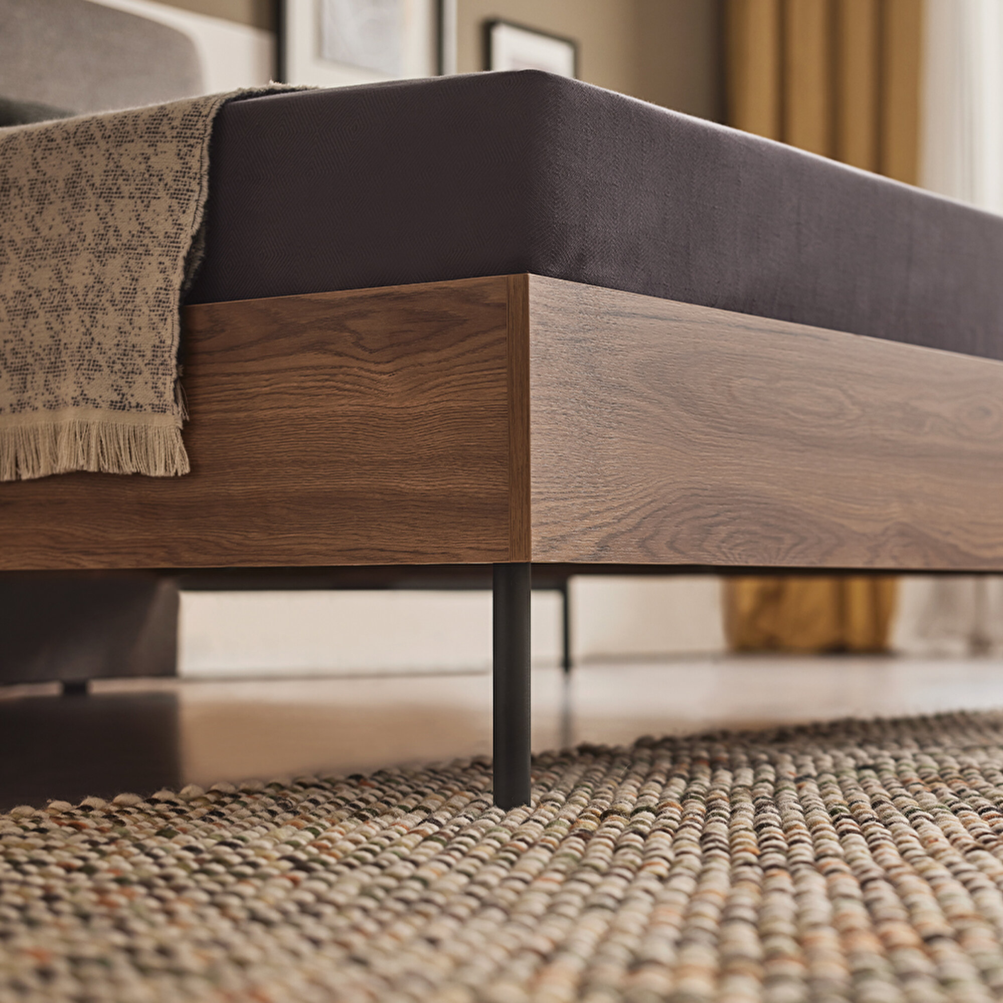 Чёрные металлические ножки в индустриальном стиле Основание кровати с изголовьем Loreto, благодаря своему индустриальному стилю и высоким чёрным металлическим ножкам, придаёт интерьеру современный и стильный вид. Высокие металлические ножки создают прочную и функциональную конструкцию.