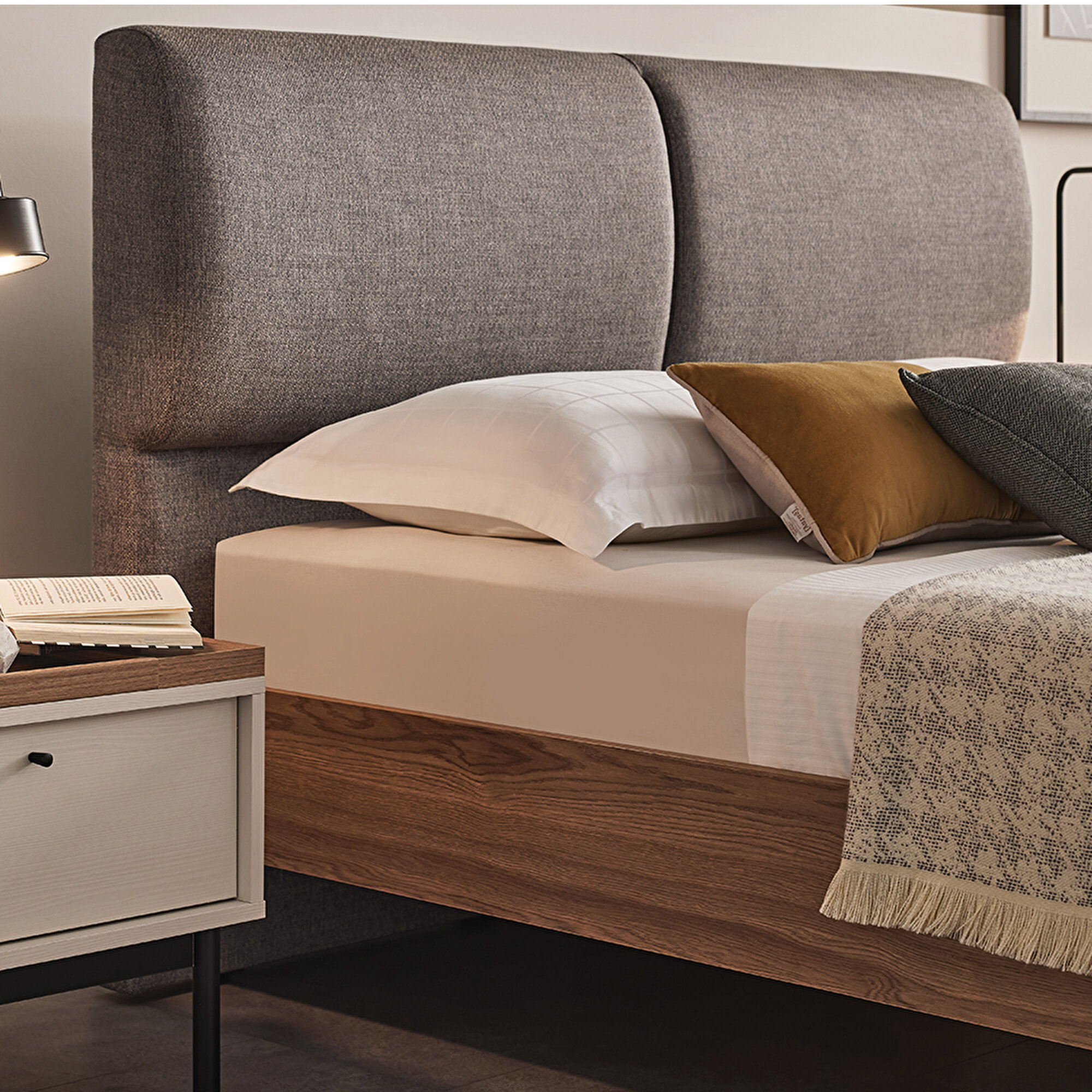 Спальный гарнитур Loreto сочетает элегантность деревянных поверхностей с изысканными металлическими деталями, создавая атмосферу спокойствия и утонченности. Матовые черные металлические ручки и ножки, современный дизайн изголовья и пуф с декоративной строчкой придают интерьеру стильный акцент. Гарнитур предлагает пять вариантов шкафов – с распашными или раздвижными дверями, обеспечивая широкий выбор комбинаций. Функциональность и современный дизайн делают спальный гарнитур Loreto идеальным решением для создания уникальной и комфортной обстановки.
