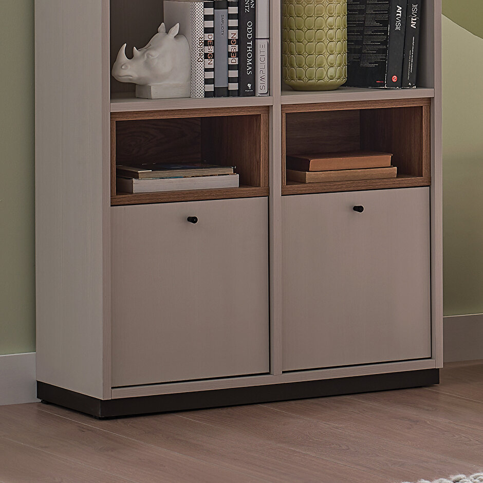 Динамичный дизайн Книжный шкаф Loreto, благодаря уникальному сочетанию оттенков светлого ореха и белого, создаёт гармонию, а матовые чёрные металлические ручки придают интерьеру современный стиль. Универсальный дизайн шкафа делает его подходящим для различных жилых интерьеров.