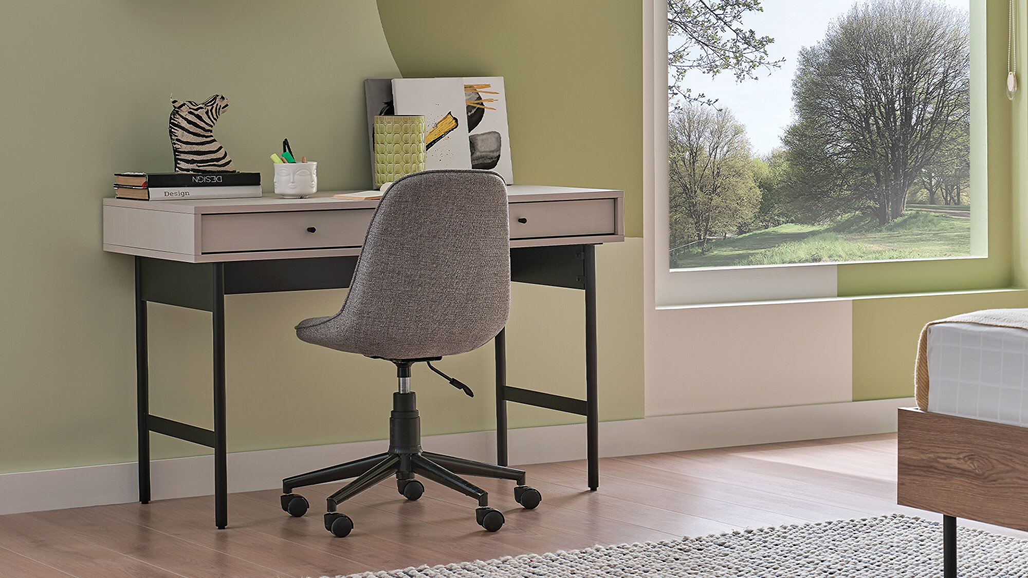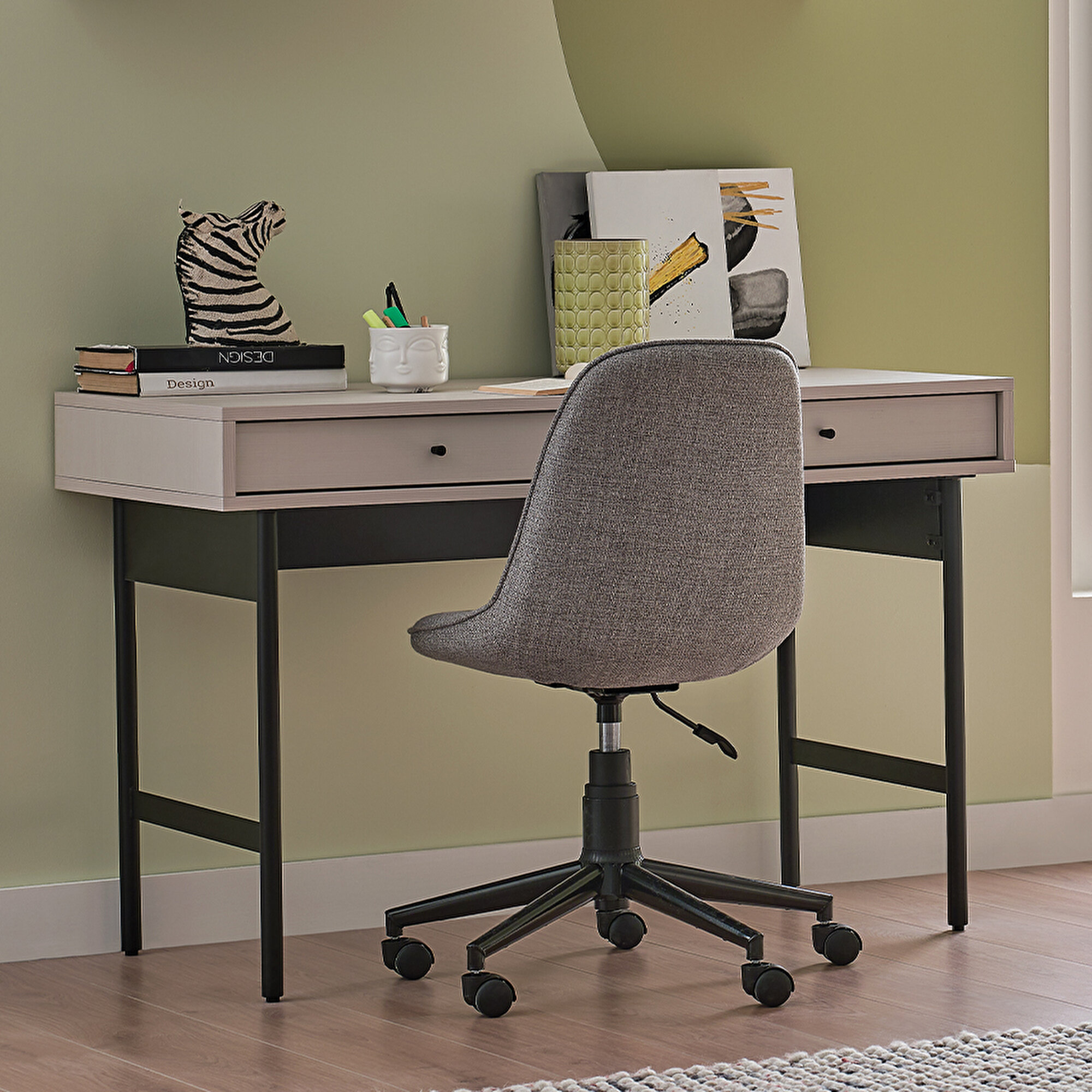 Письменный стол Loreto сочетает динамичный дизайн с прочными и качественными материалами, обеспечивая долговечность и комфорт в использовании. Его современный индустриальный стиль легко вписывается в любое пространство, а матовые черные металлические ножки добавляют удобства и устойчивости. Текстурированная поверхность с природными оттенками подчеркивает гармонию с другими элементами коллекции. Два выдвижных ящика не только придают столу элегантный вид, но и делают его более функциональным и практичным.