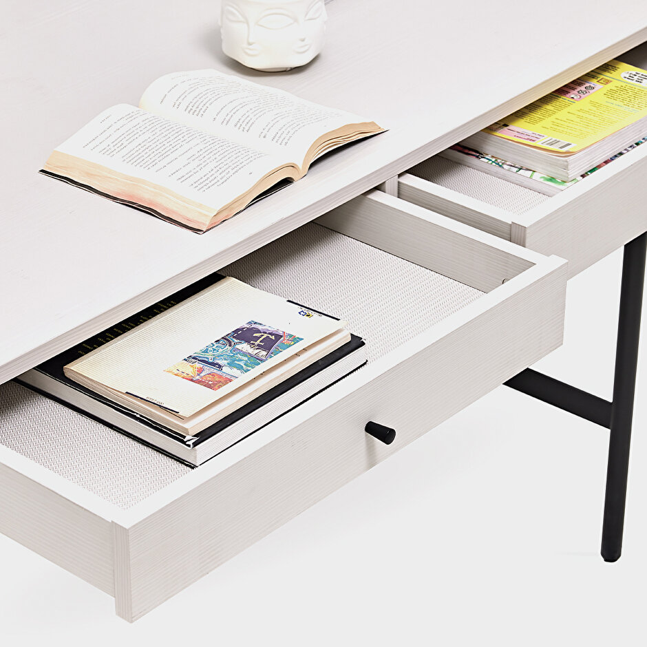 Привлекательные детали Письменный стол Loreto привносит элегантность в интерьер благодаря матовым черным металлическим ручкам. Черные металлические ножки не только дополняют выразительный дизайн, но и обеспечивают устойчивость и комфорт в использовании.