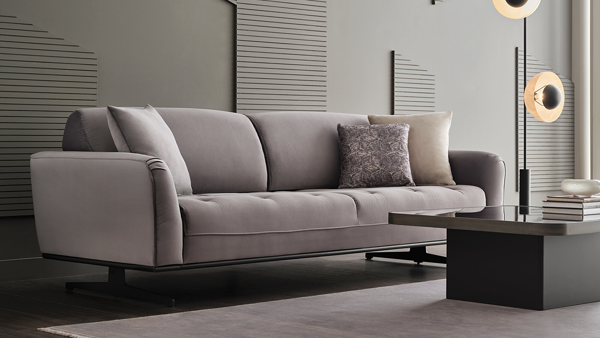 Комфорт сиденья 36 Dns & 24 Dns Soft | Цвет Серый | Размеры подлокотника 200x620 mm | Размер декоративной подушки Декоративная Подушка 1: 50x50 - 1 шт. Декоративная Подушка 2 : 45x45 - 1 шт. Декоративная Подушка 3: 50x50 - 1 шт. |