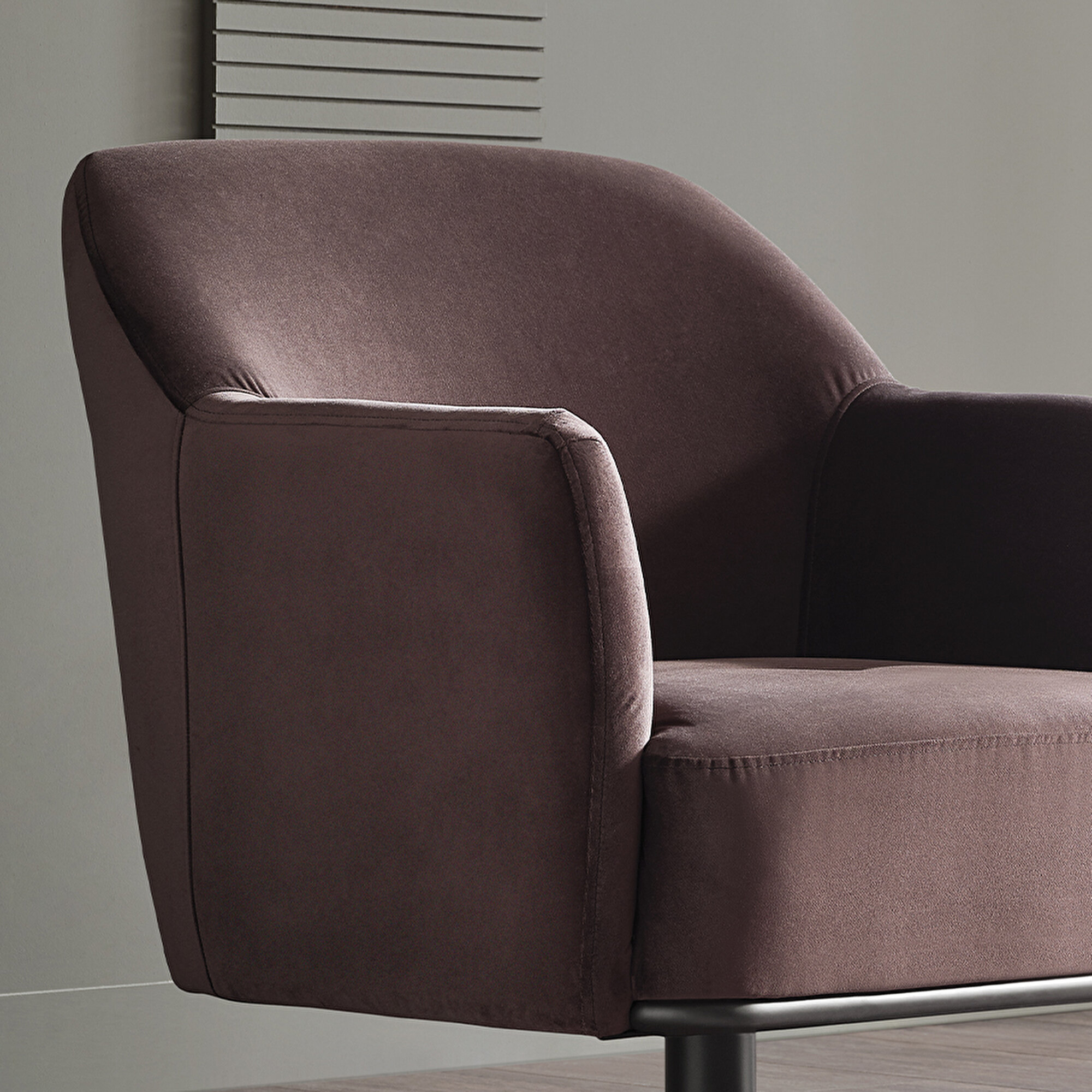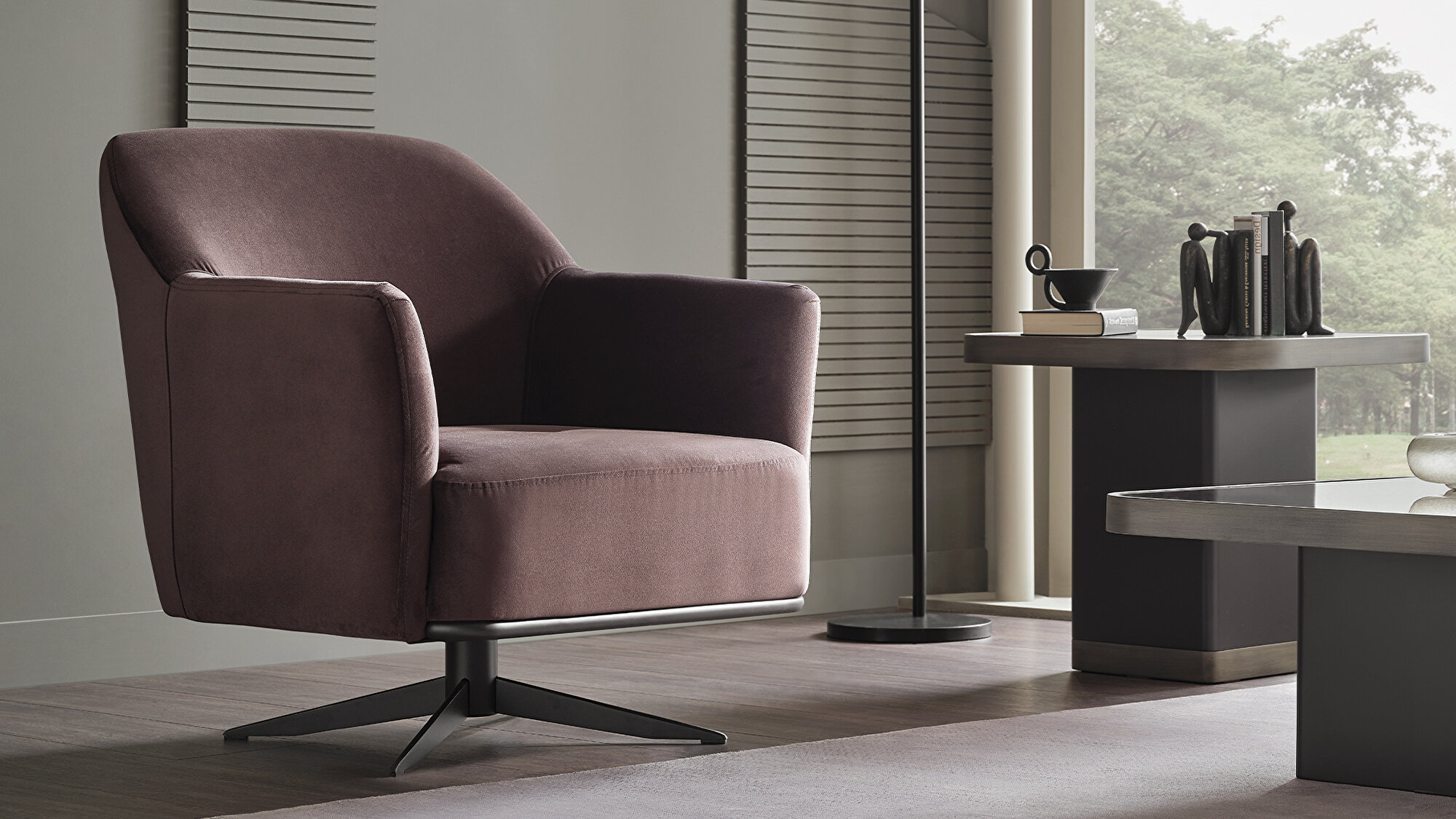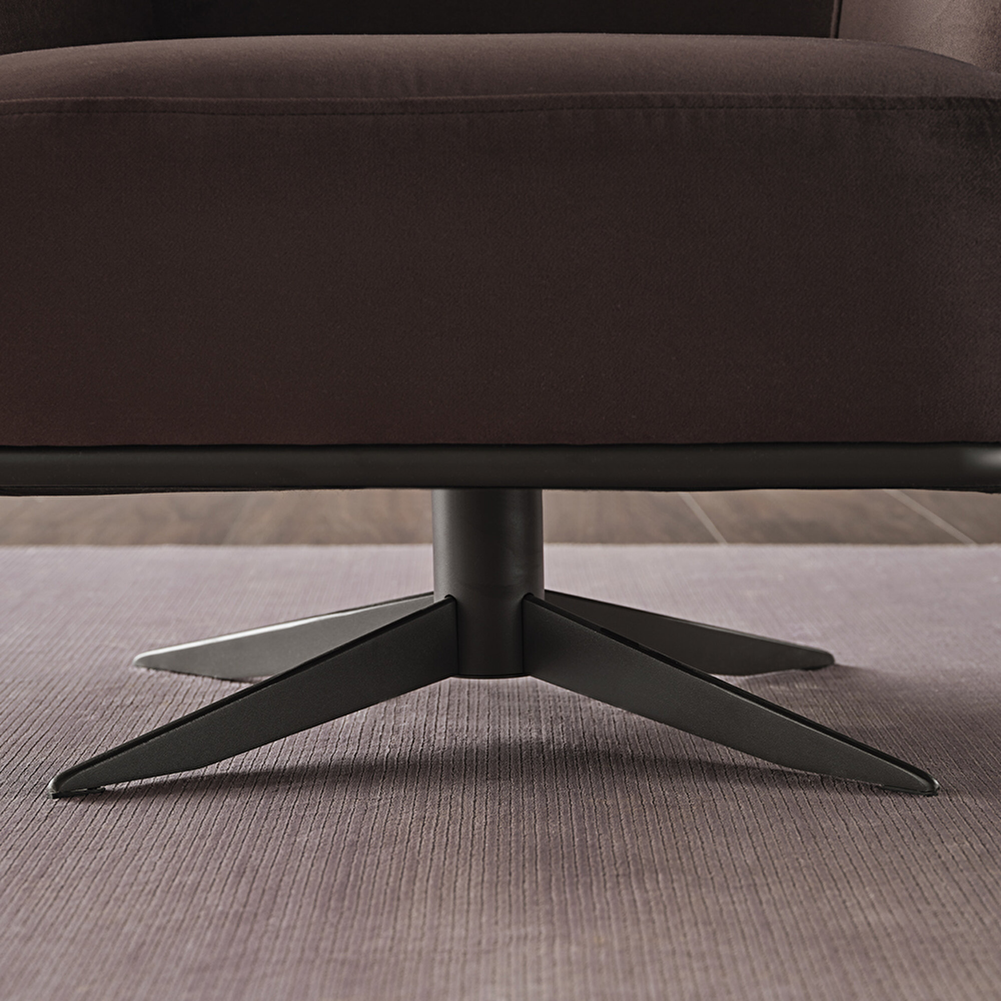Элегантные детали Кресло Marion с поворотными ножками, сочетающими функциональность и эстетику, предлагает два варианта металлических ножек — золотые и коричневые.