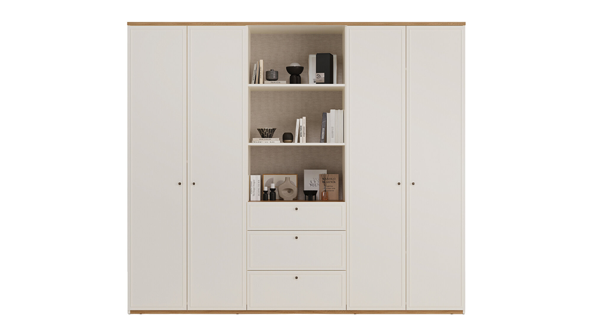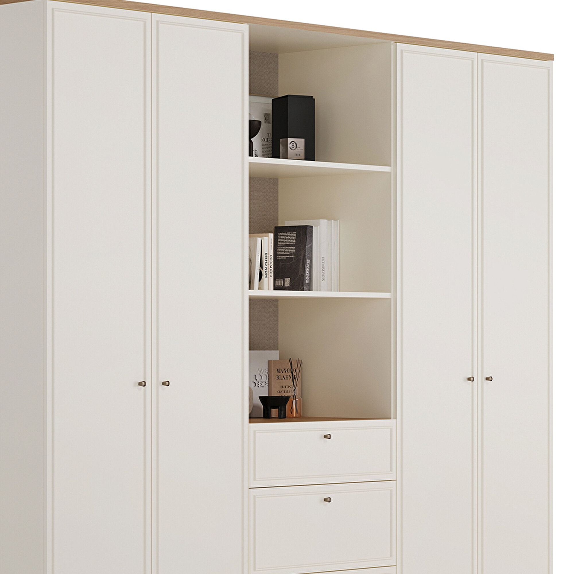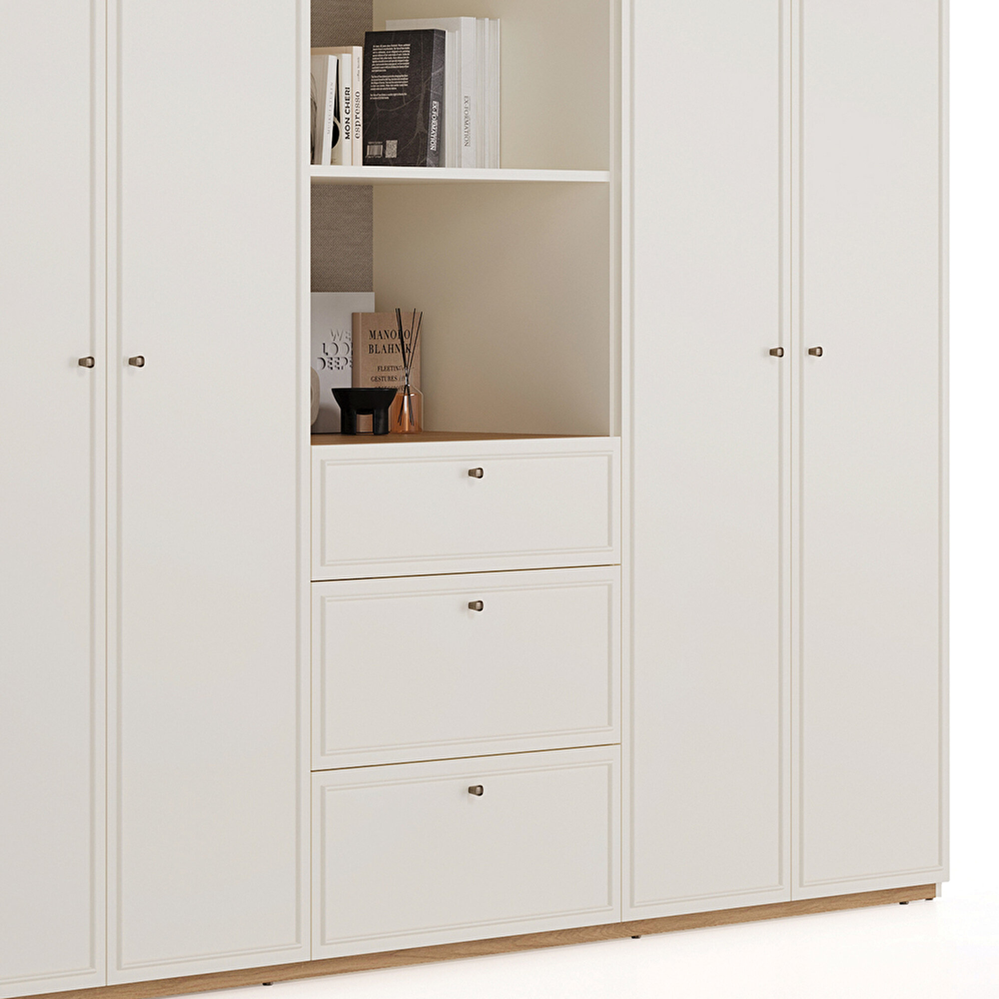 Country-style designNatural and modern wood aestheticsWood and profile detailingWarm and functional designComfortable eleganceStriking texturesOak and cream color combinationNatural-toned mirror applicationThree-drawer configurationMink-colored metal handle designSoft-close hinge system