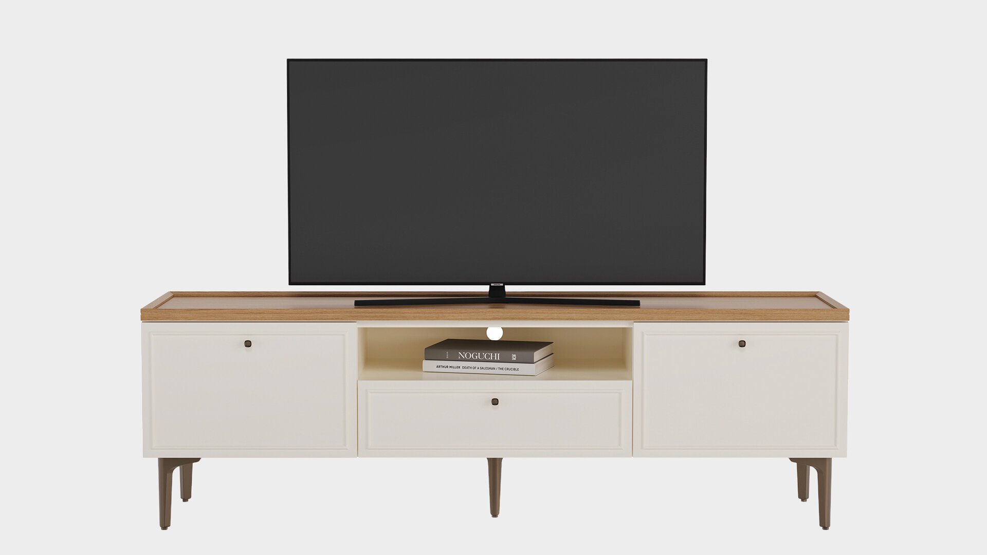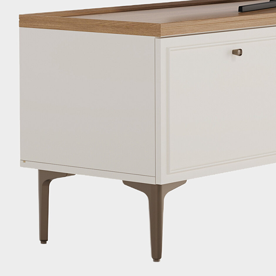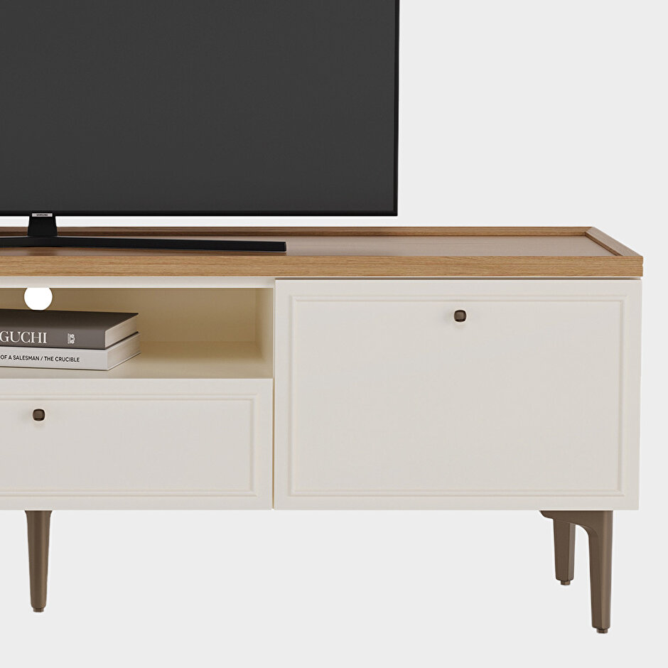 Country-style designNatural and modern wood aestheticsWood and profile detailingWarm and functional designComfortable eleganceStriking texturesOak and cream color combinationOne-drawer configurationMink-colored metal handle designSoft-close hinge and drawer rail system