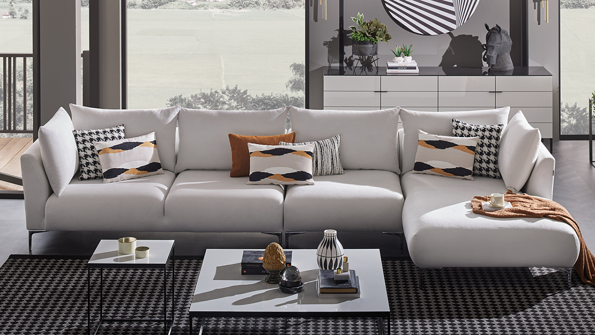 Комфорт сиденья Максимальный комфорт | Цвет Белый | Размеры подлокотника 180x710 mm | Размер декоративной подушки Подушка Для Спины 1: 92x53 - 4 шт. Декоративная Подушка 1: 40x60 - 3 шт. Декоративная Подушка 2: 55x65 - 1 шт. Декоративная Подушка 3: 45x45 - 2 шт. |