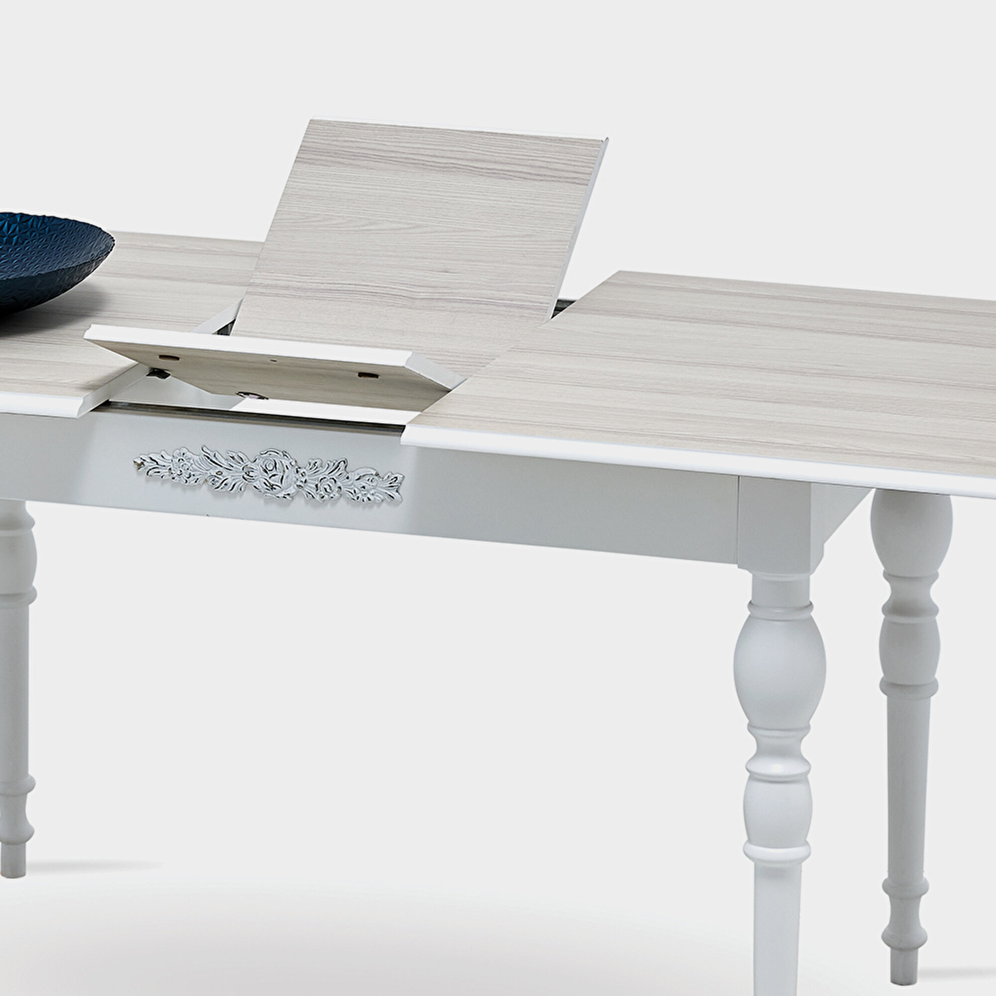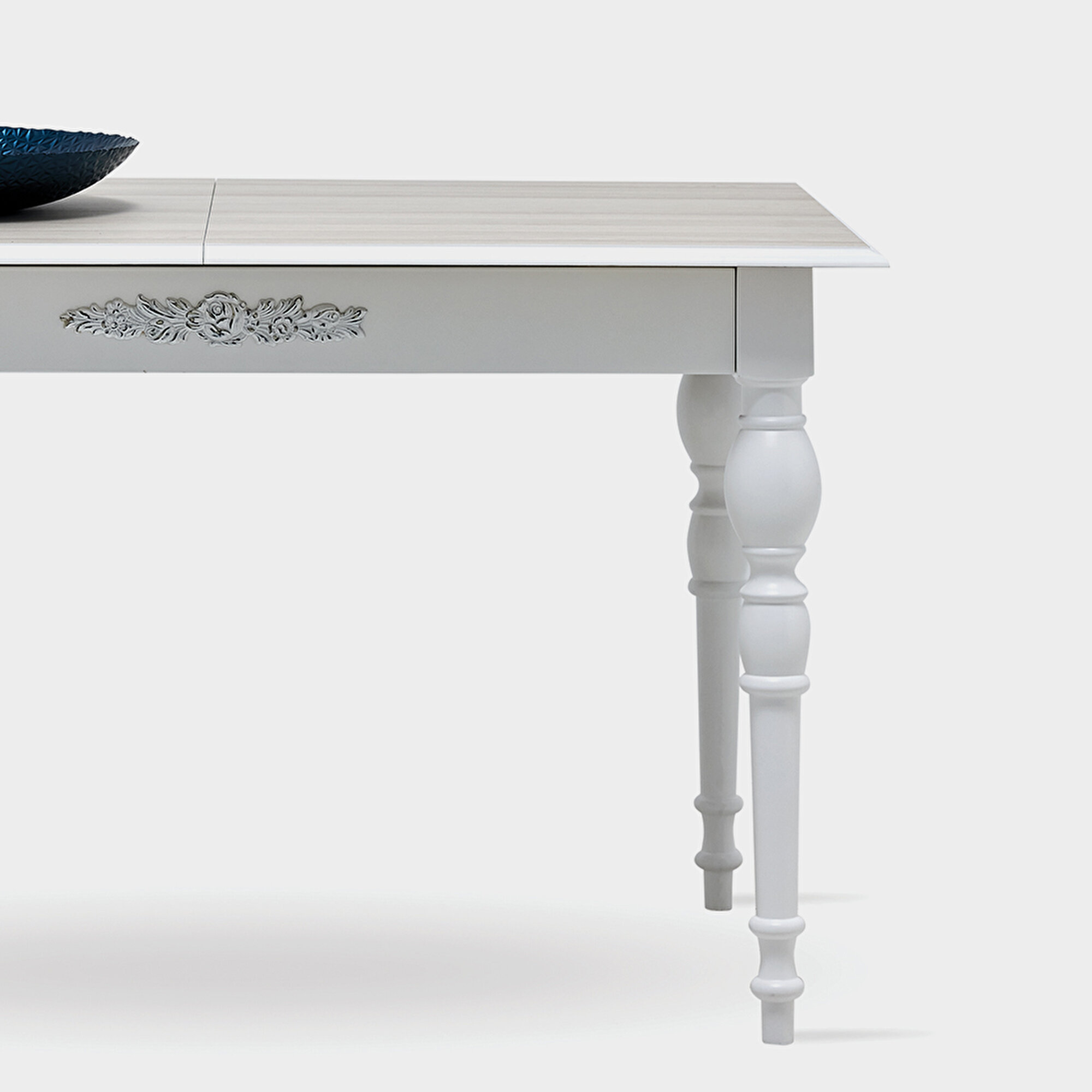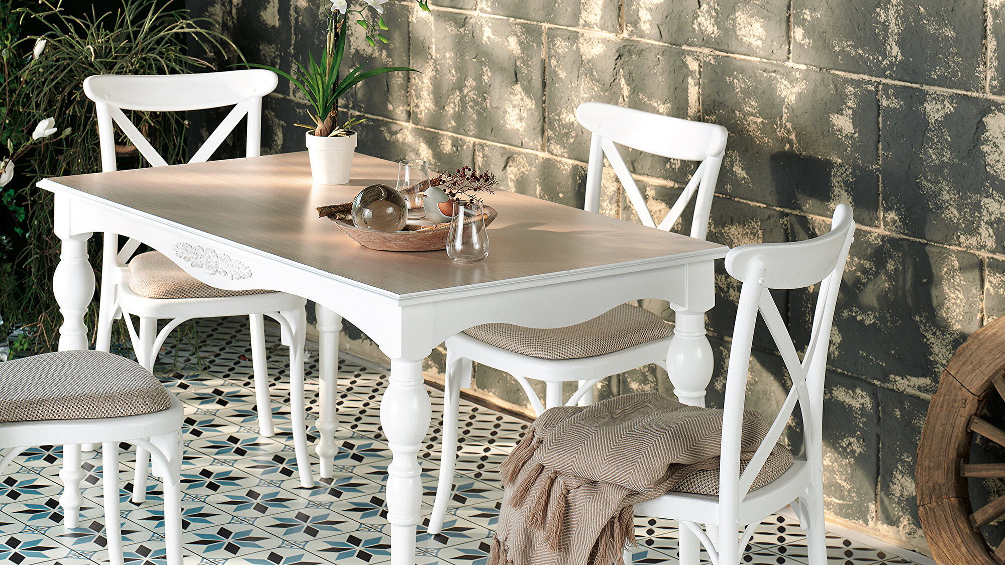 Стол Oliva, объединяющий свежесть белого цвета с классическими дизайнерскими элементами, наполняет кухню элегантной атмосферой.