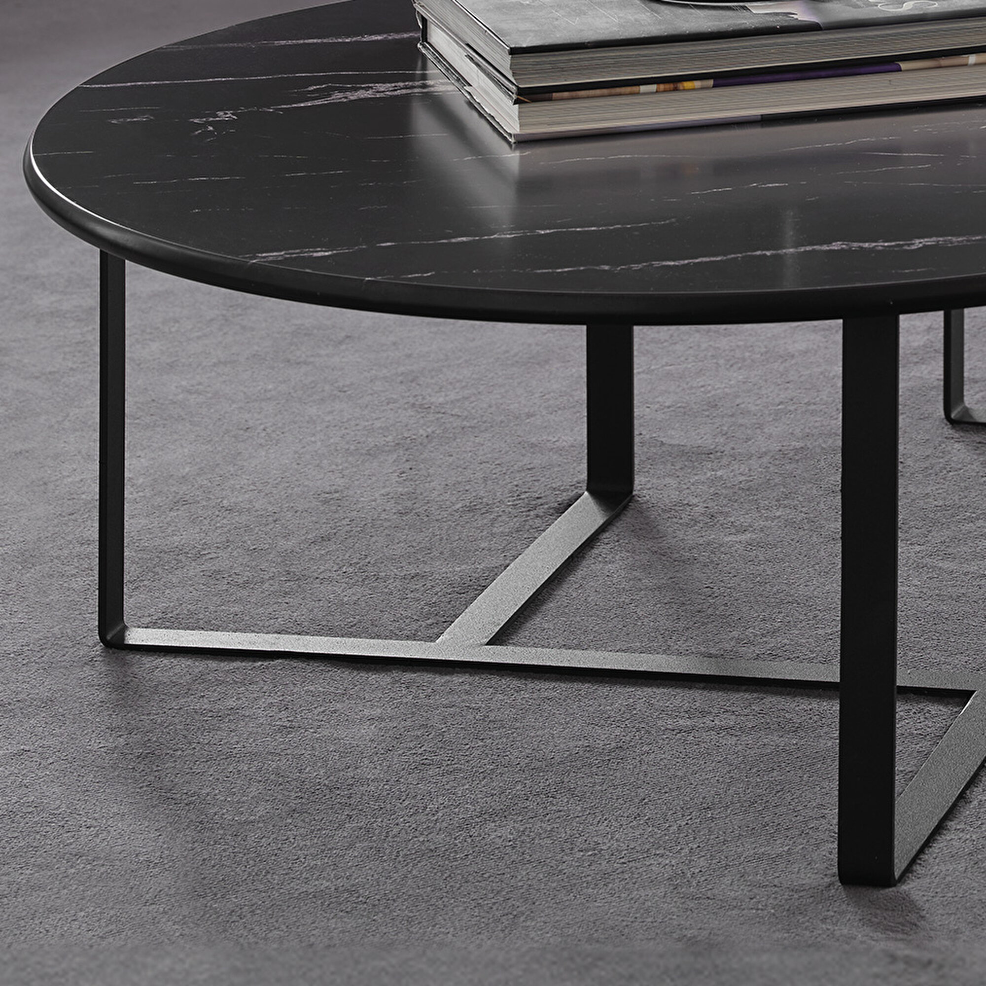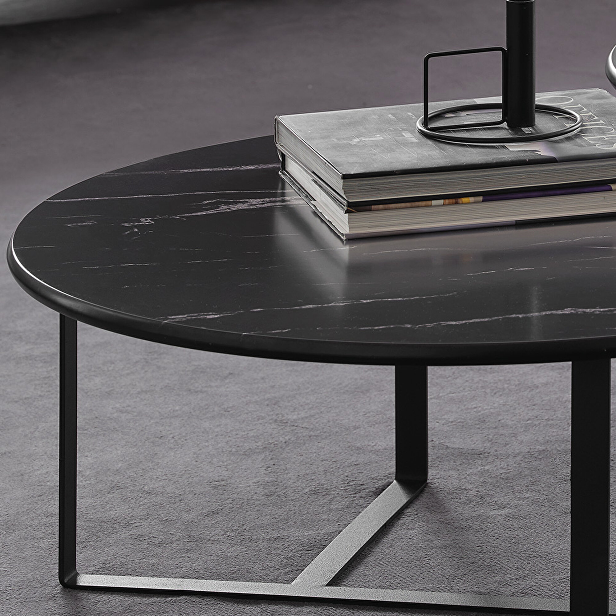 Серия журнальных столиков Padme состоит из 7 различных модулей и представляет собой уникальный дизайн с современным стилем и черными металлическими ножками. Благодаря поверхности, имитирующей мрамор, а также лакированному МДФ, она предлагает разнообразные альтернативы в аморфных, круглых и эллиптических формах, предоставляя пользователю свободу в выборе дизайна.