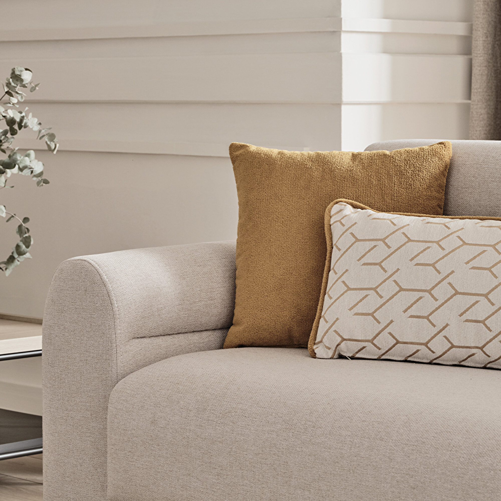 Цвет Кремовый | Размер декоративной подушки Декоративная Подушка 1: 45x45 - 2 шт. Декоративная Подушка 2: 15x50 - 1 шт. | Количество декоративных подушек 3 | Возможность чистки Можно протирать влажной тряпкой |