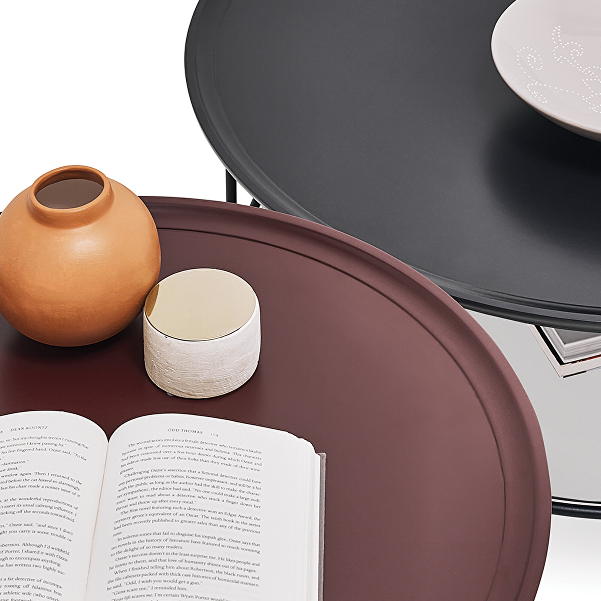 Приставной столик Parma привлекает внимание своими оригинальными цветами и деталями, создавая современный и стильный акцент в интерьере. Его круглая форма подчёркивает элегантный современный дизайн, а верхняя панель из МДФ предлагает прочное и вечное решение. Приставной столик Parma завершает декор с бордовым верхом и бордовыми металлическими ножками, создавая гармонию и выразительность в пространстве.