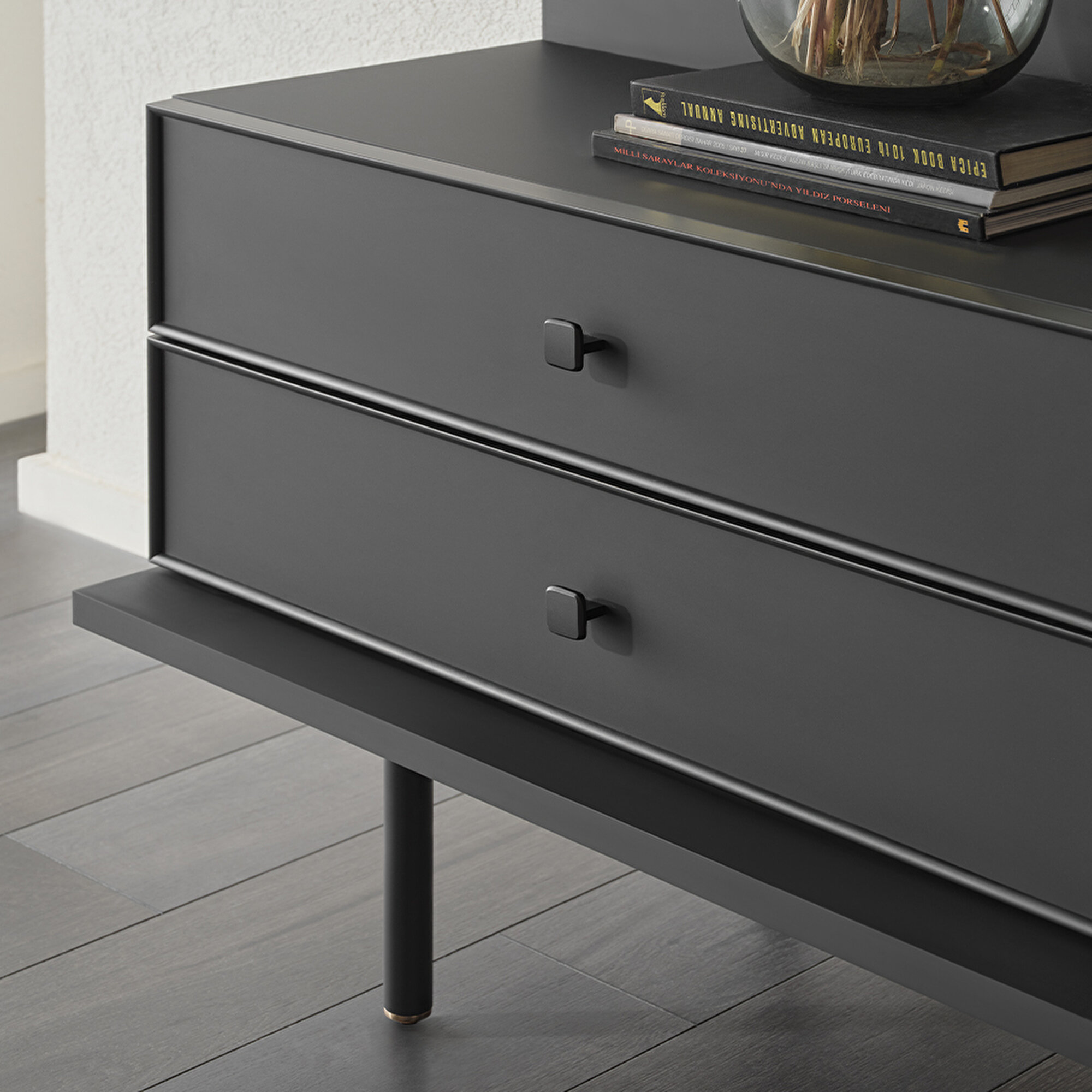 Практичный дизайн Сервант Parma привлекает внимание не только элегантным дизайном, но и практичностью. Два ящика обеспечивают удобное и функциональное пространство для хранения.