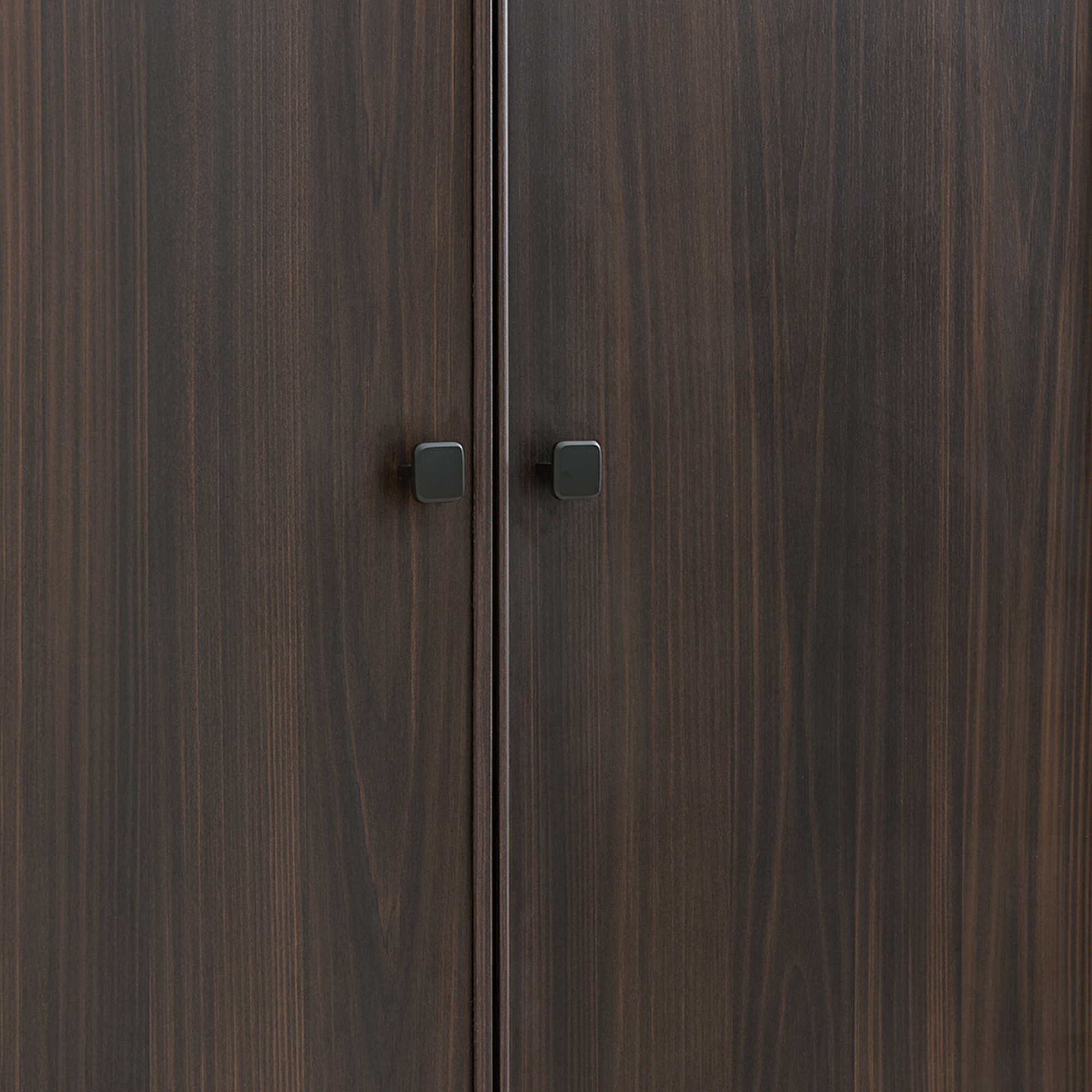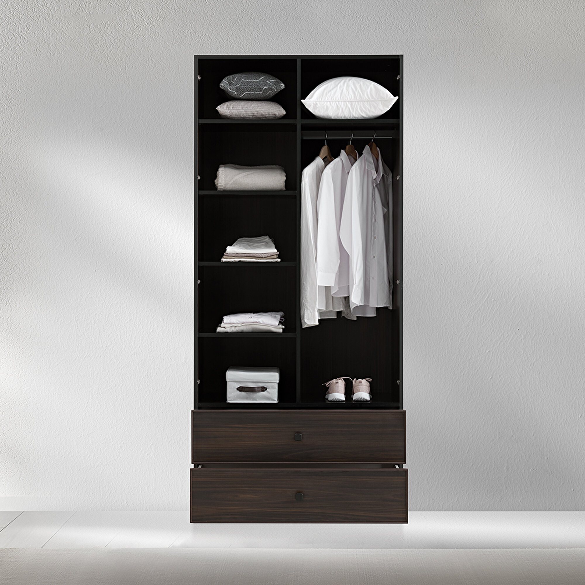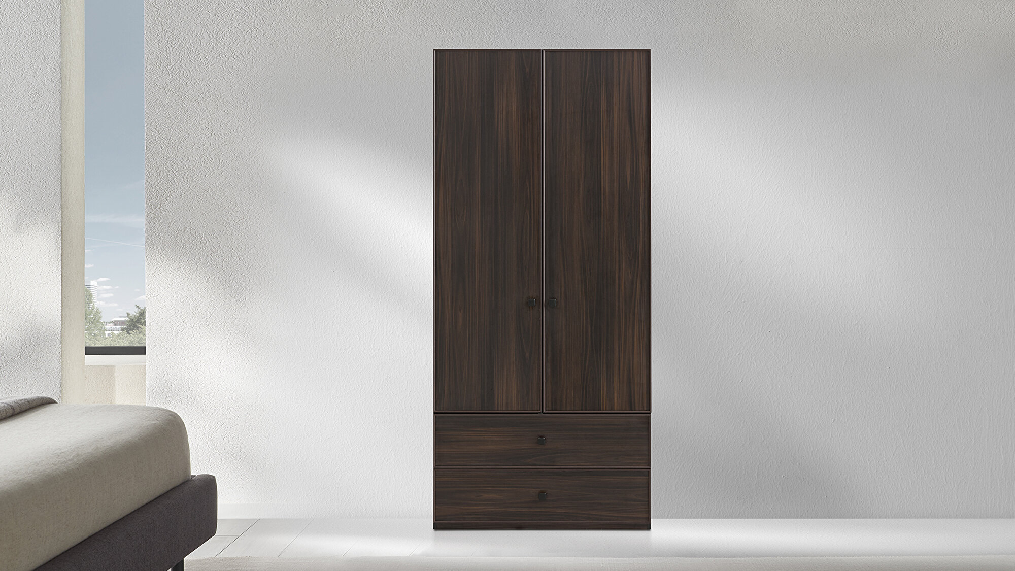 Шкаф Parma с двумя дверцами и ящиками, выполненный в тёмном ореховом цвете, идеально вписывается в самые современные интерьеры. Его современный дизайн подходит для любого пространства, создавая стильный и гармоничный облик. Шкаф Parma обещает долгосрочное использование благодаря прочной конструкции. Декоративная рамка на дверцах и чёрные металлические ручки подчёркивают уникальный и оригинальный стиль этого шкафа.