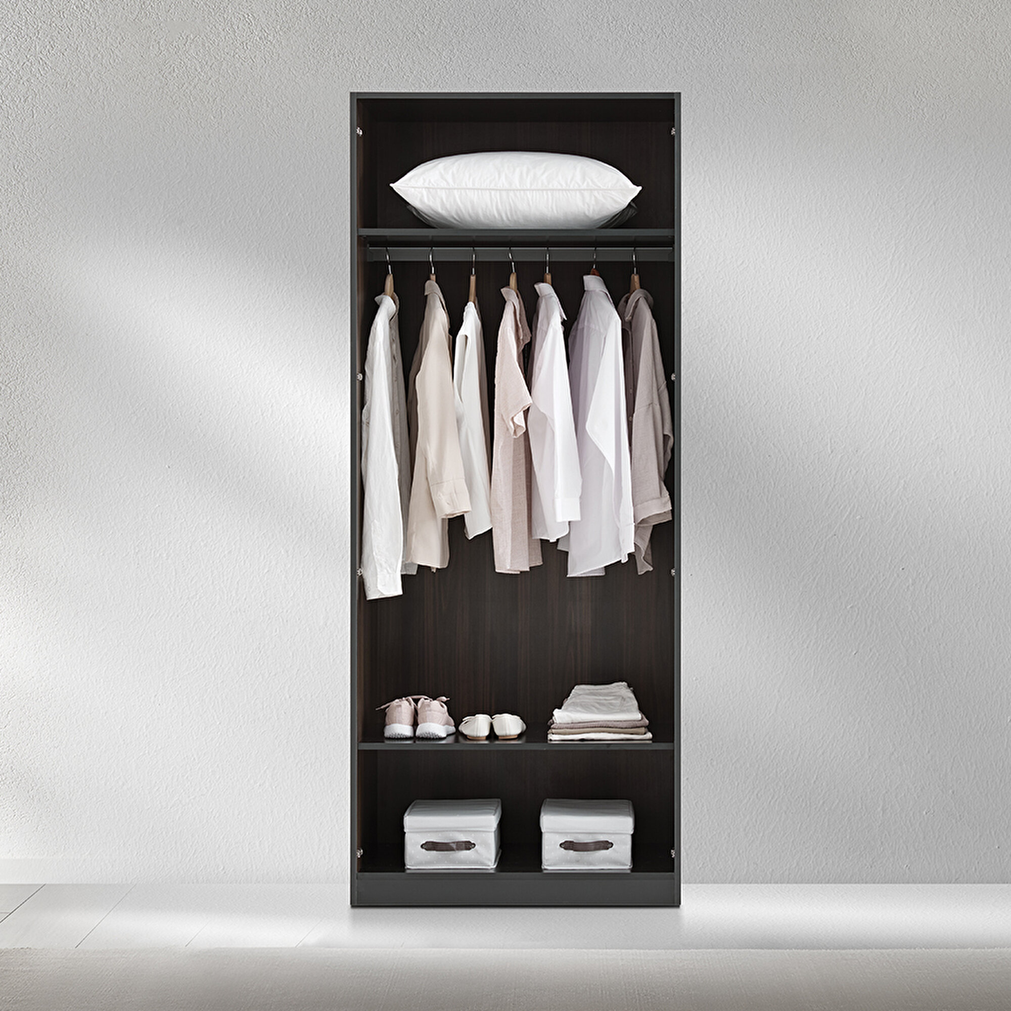 Двухдверный шкаф Parma, выполненный в сочетании тёмного ореха и чёрного цвета, идеально вписывается в самые современные интерьеры. Его современный дизайн подходит для любого пространства, создавая стильный и гармоничный облик. Шкаф Parma обещает долгосрочное использование благодаря прочной конструкции. Декоративная рамка на дверцах и чёрные металлические ручки подчеркивают уникальный и оригинальный стиль этого шкафа.