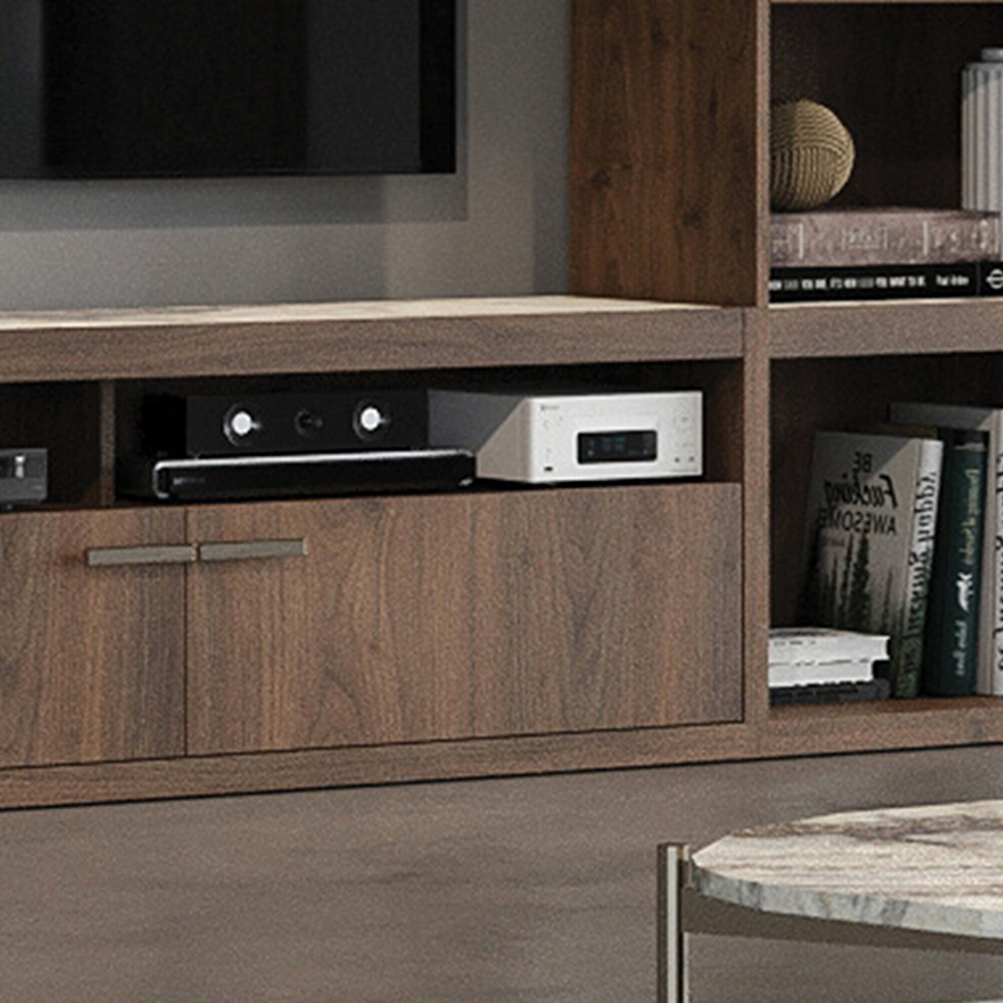 ТВ-стеллаж с ящиком Pavia, привлекающий внимание текстурой дерева теплого орехового цвета, акцентирует природную эстетику материалов. Мраморный рисунок на поверхности, а также металлические ручки и ножки цвета Brushed Inox подчеркивают изысканные детали коллекции. Благодаря возможности модульной настройки, этот стеллаж сочетает высококачественный дизайн с функциональностью, создавая гармоничный акцент в интерьере.