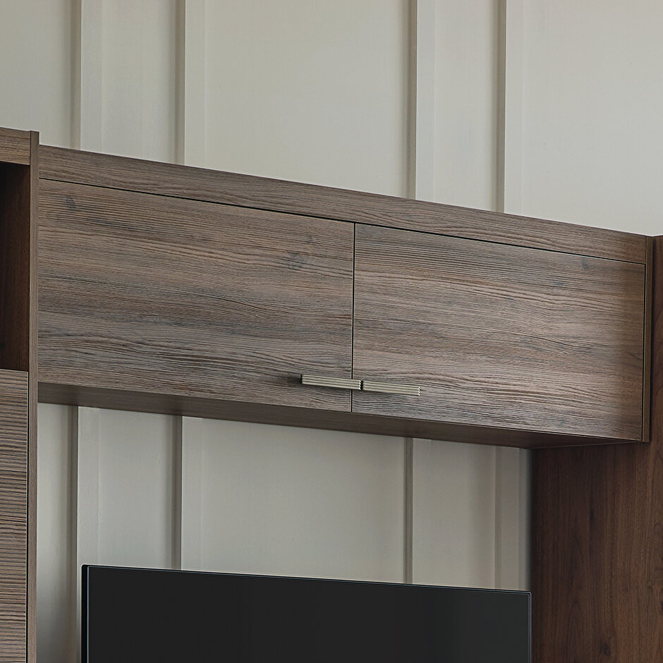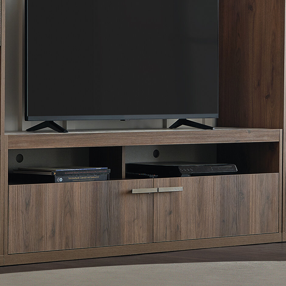 ТВ-стеллаж Pavia, выполненный с текстурой дерева теплого орехового оттенка, создает натуральный эстетический стиль, который подчеркивается яркими дизайнерскими акцентами. Модель доступна в двух вариантах — с основанием и на ножках. Стеллаж с основанием предлагает возможность модульной настройки, обеспечивая высокую функциональность. Благодаря разнообразию книжных полок разных размеров, этот стеллаж идеально подходит для решения различных задач по декорированию интерьера.