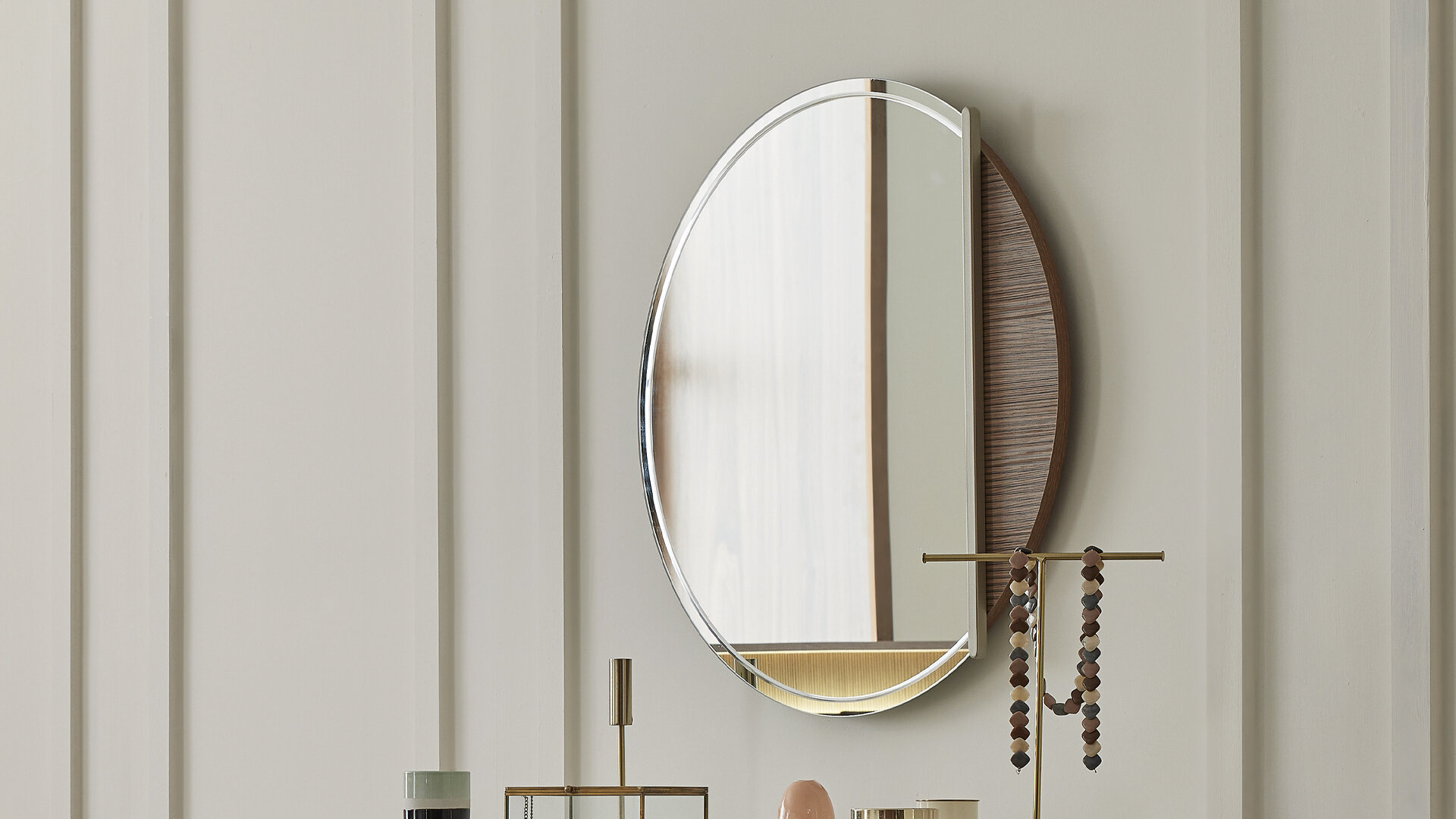 Зеркало Pavia, объединяя эстетику натурального дерева с современными дизайнерскими линиями, элегантно завершает свой стиль благодаря уникальной геометрической форме.