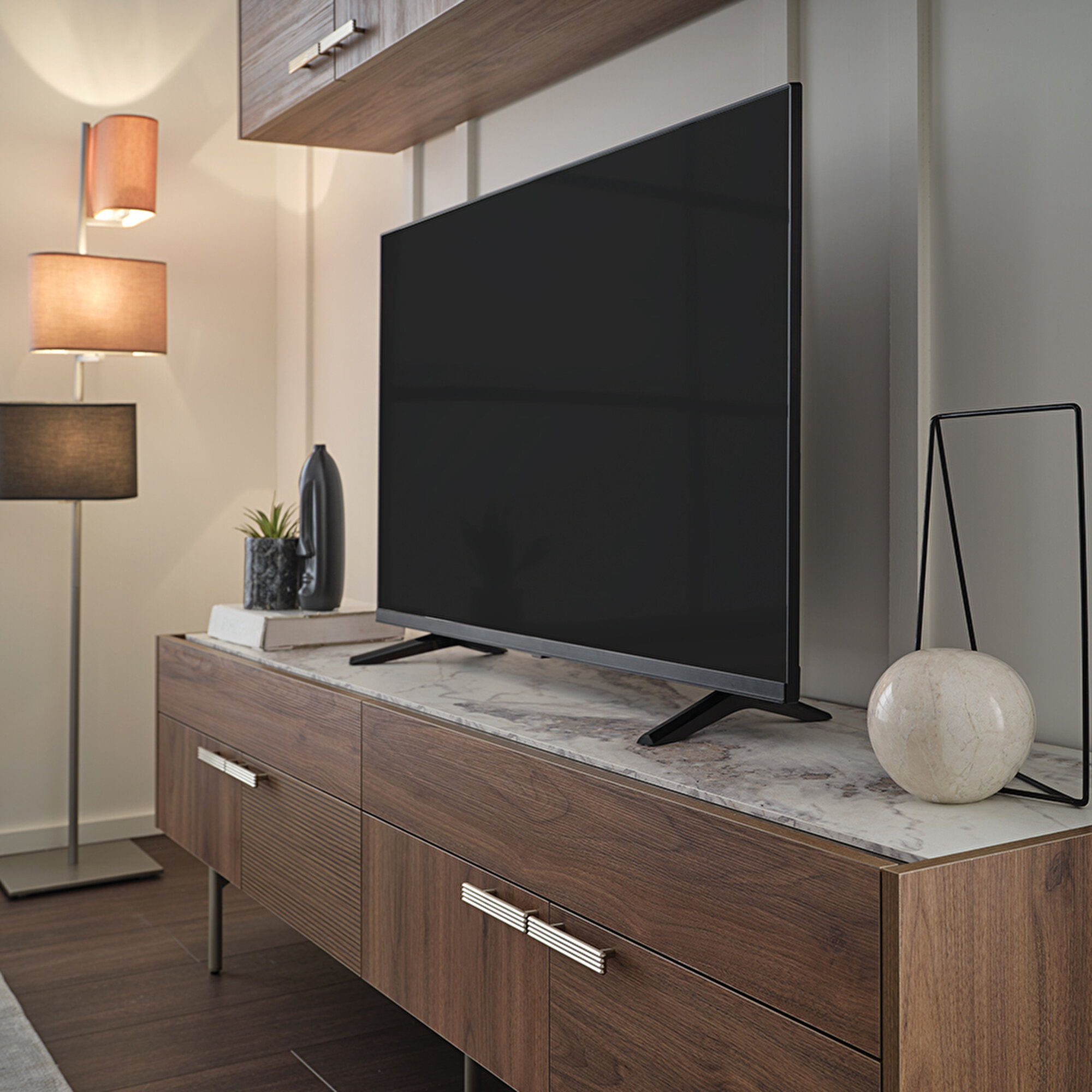 Вневременная элегантность мрамор ТВ-стеллаж Pavia, выделяющийся геометричным дизайном, отражает естественную эстетику дерева, а мраморный рисунок на поверхности придаёт декору неподвластный времени и утончённый стиль.