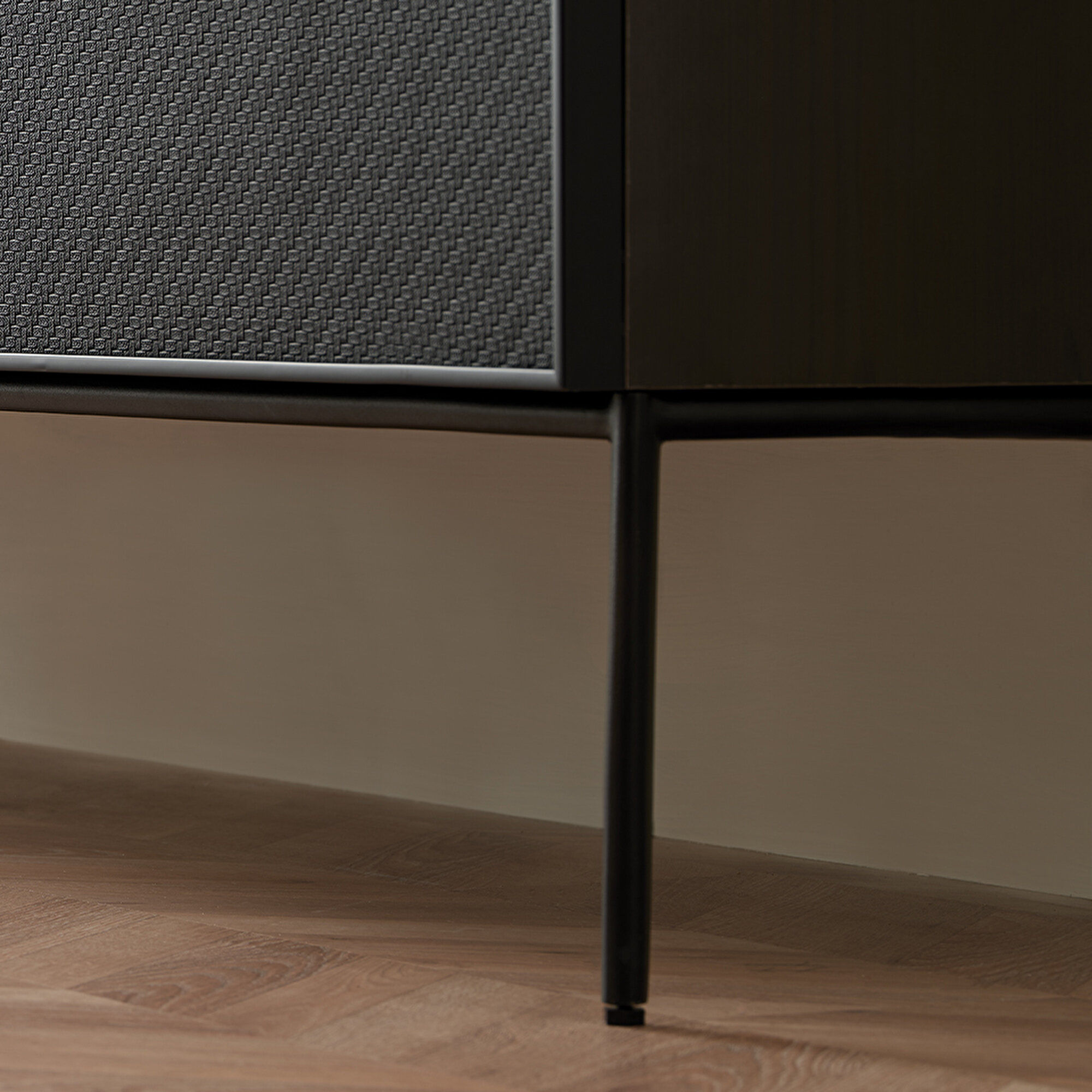 Ящики оригинального дизайна и металлические ножки ТВ-стеллаж Riga на ножках не только дополняет интерьер элегантным дизайном, но и обеспечивает просторное хранение благодаря трем глубоким выдвижным ящикам. Черные металлические ножки придают модели современный и утонченный акцент, гармонично вписываясь в интерьер.