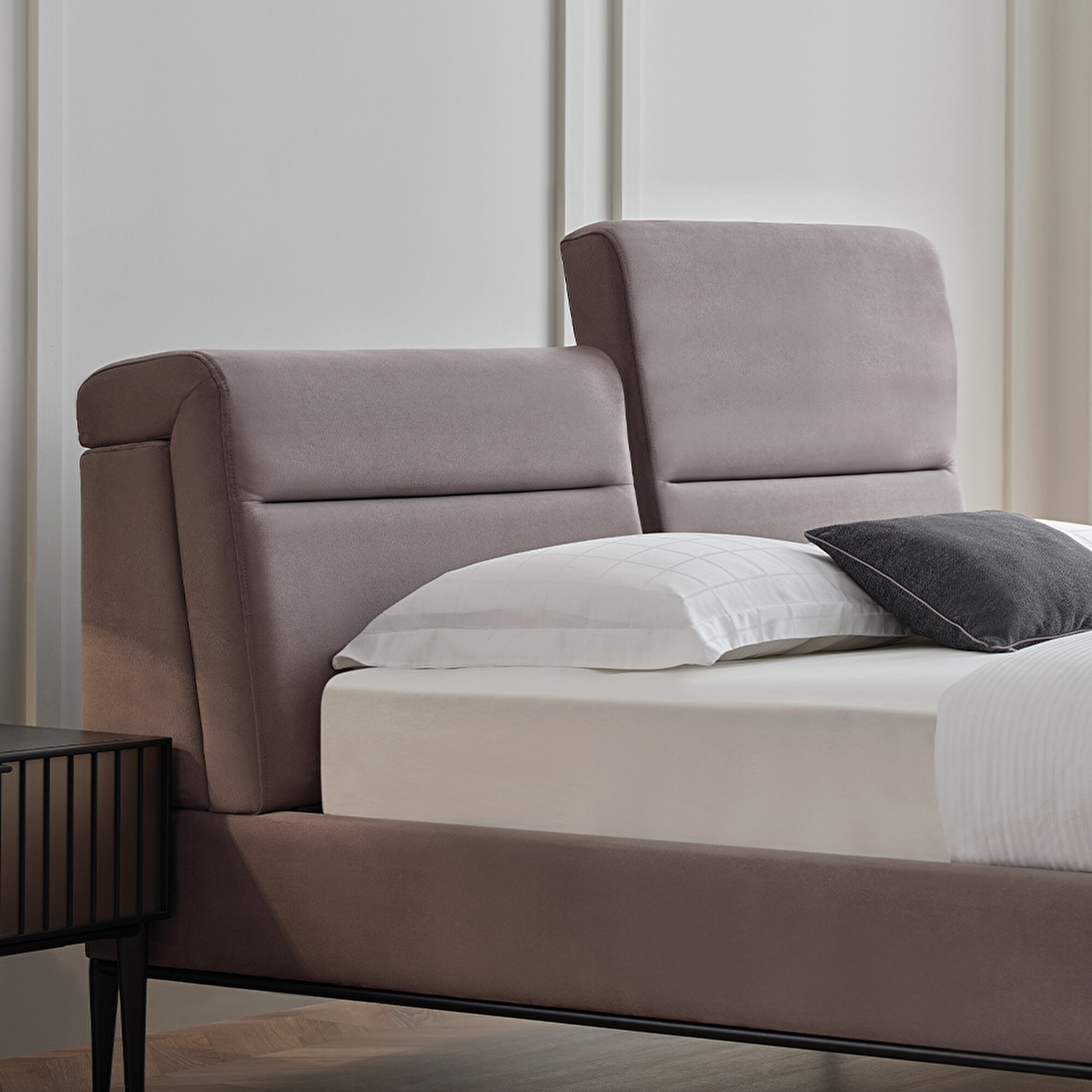 Отражение прочности и современного дизайна Основание кровати с изголовьем Riga сочетает в себе прочность металлических ножек и современный дизайн, формируя стильный и выразительный образ.
