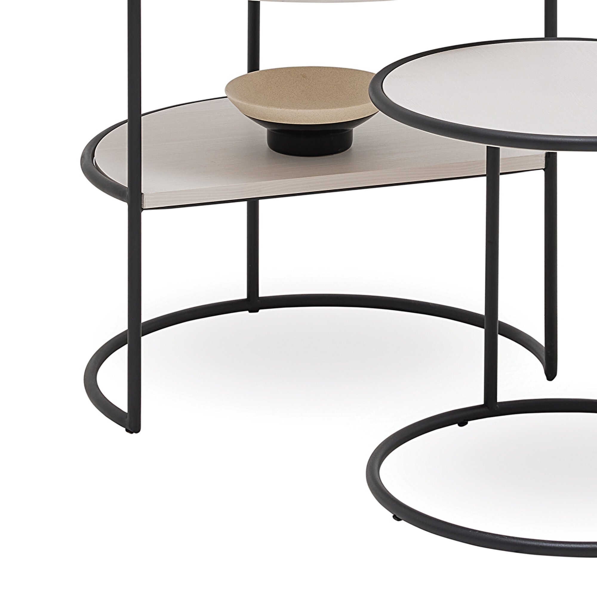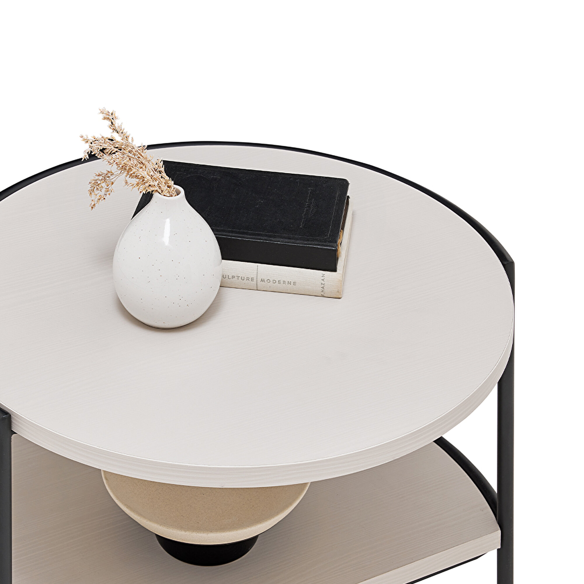 Журнальный столик Rita, объединяющий древесную текстуру с светло-серыми поверхностями, представляет собой стильное и простое решение. Круглая форма и чёрные металлические ножки создают элегантный и лаконичный дизайн. Функциональная полка добавляет удобства, а возможность вставки малого столика в большой помогает оптимизировать пространство в вашем интерьере.
