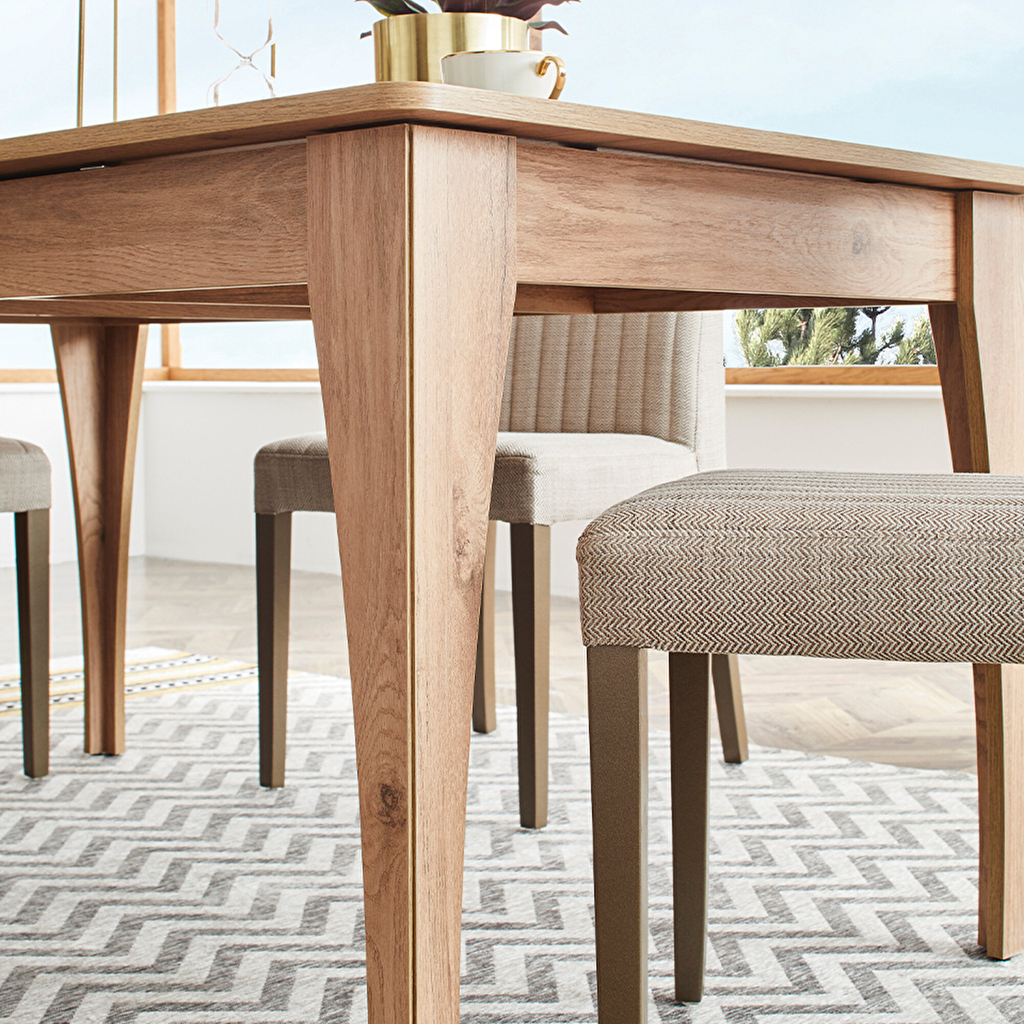 Функциональный дизайн Стол Sona с уникальным и современным дизайном, благодаря раздвижной столешнице и использованию прочных древесных материалов, сочетает функциональность с элегантностью.