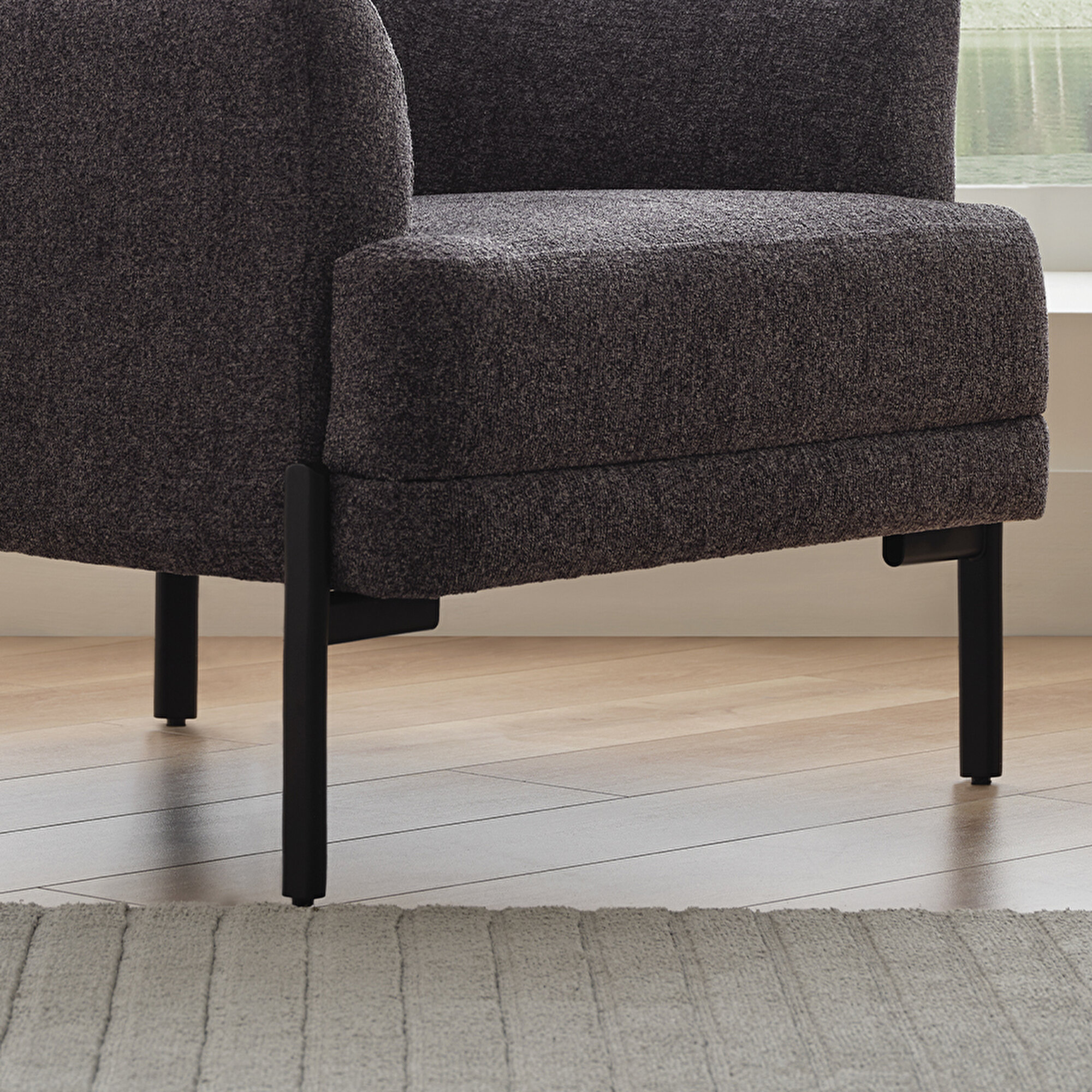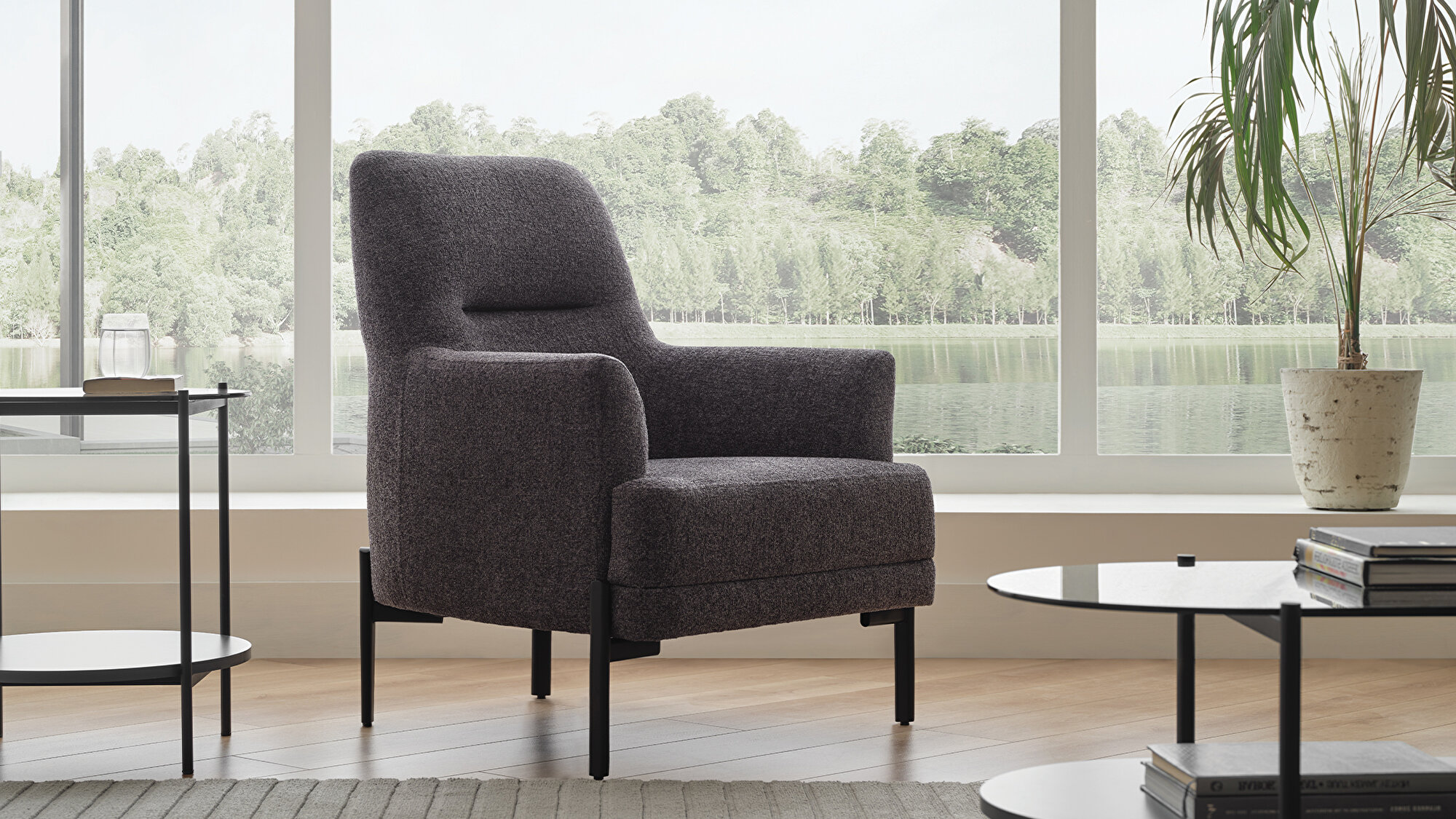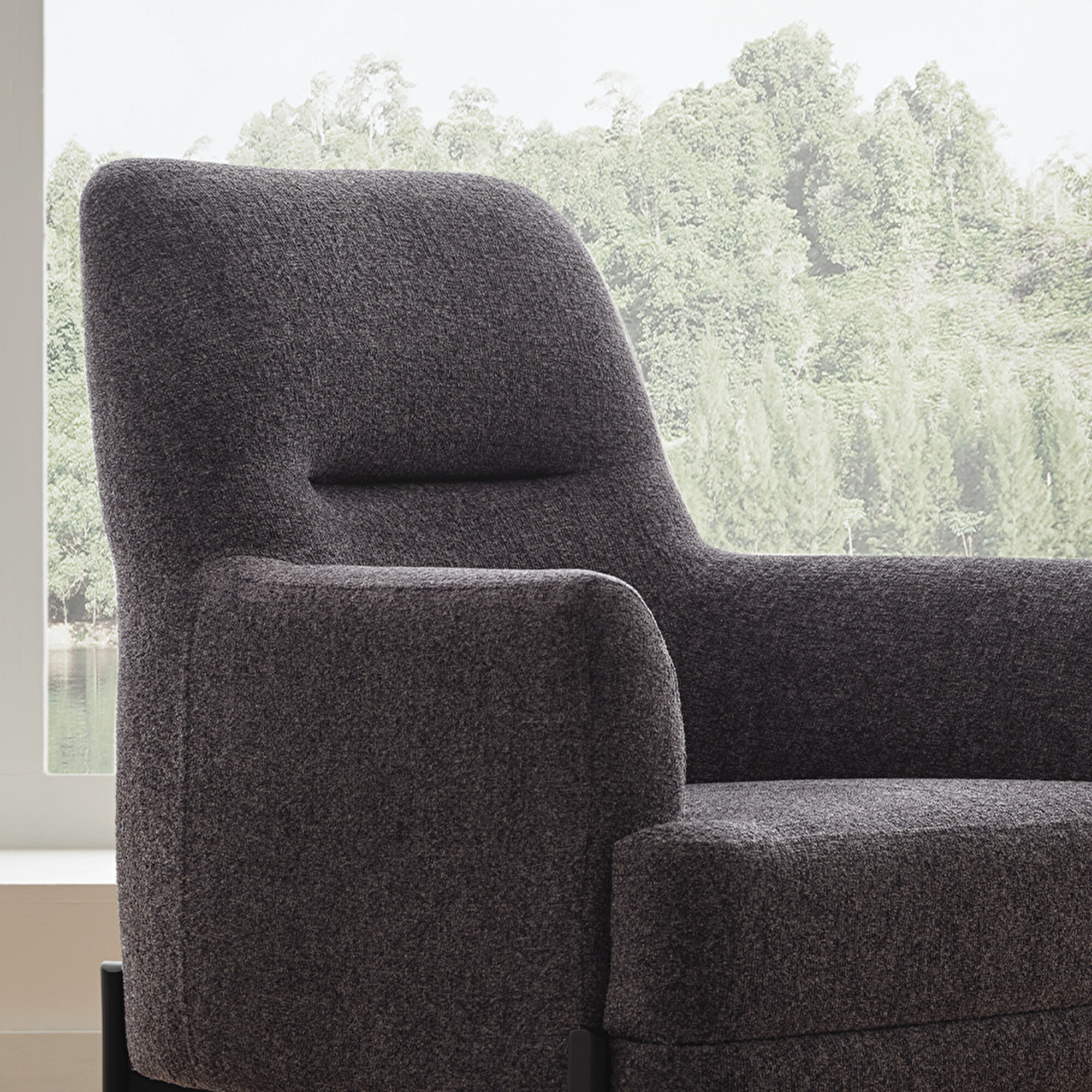 Преимущество лёгкой уборки Кресло Terra с черными металлическими ножками привлекает современными визуальными акцентами. Высокие ножки и ткань, легко очищаемая от загрязнений, делают его практичным и удобным в использовании.