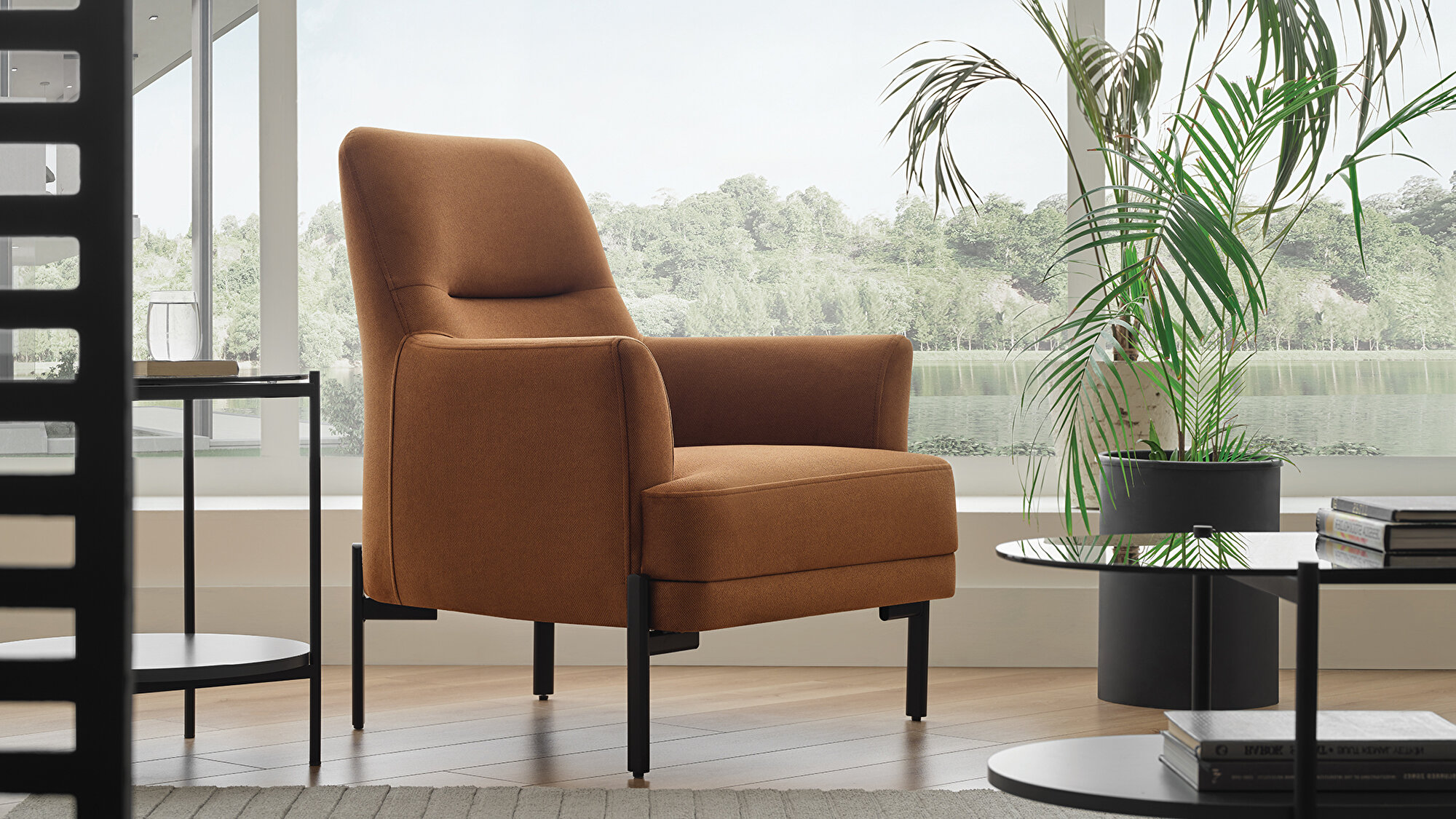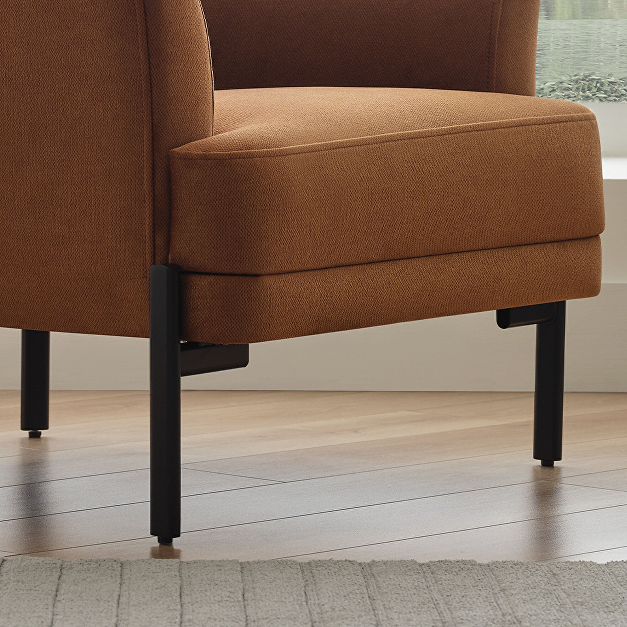 Элегантные визуальные детали Кресло Terra, выделяющееся лаконичным и элегантным дизайном, создаёт стильные визуальные акценты благодаря металлическим чёрным ножкам, придающим дизайну дополнительную выразительность.