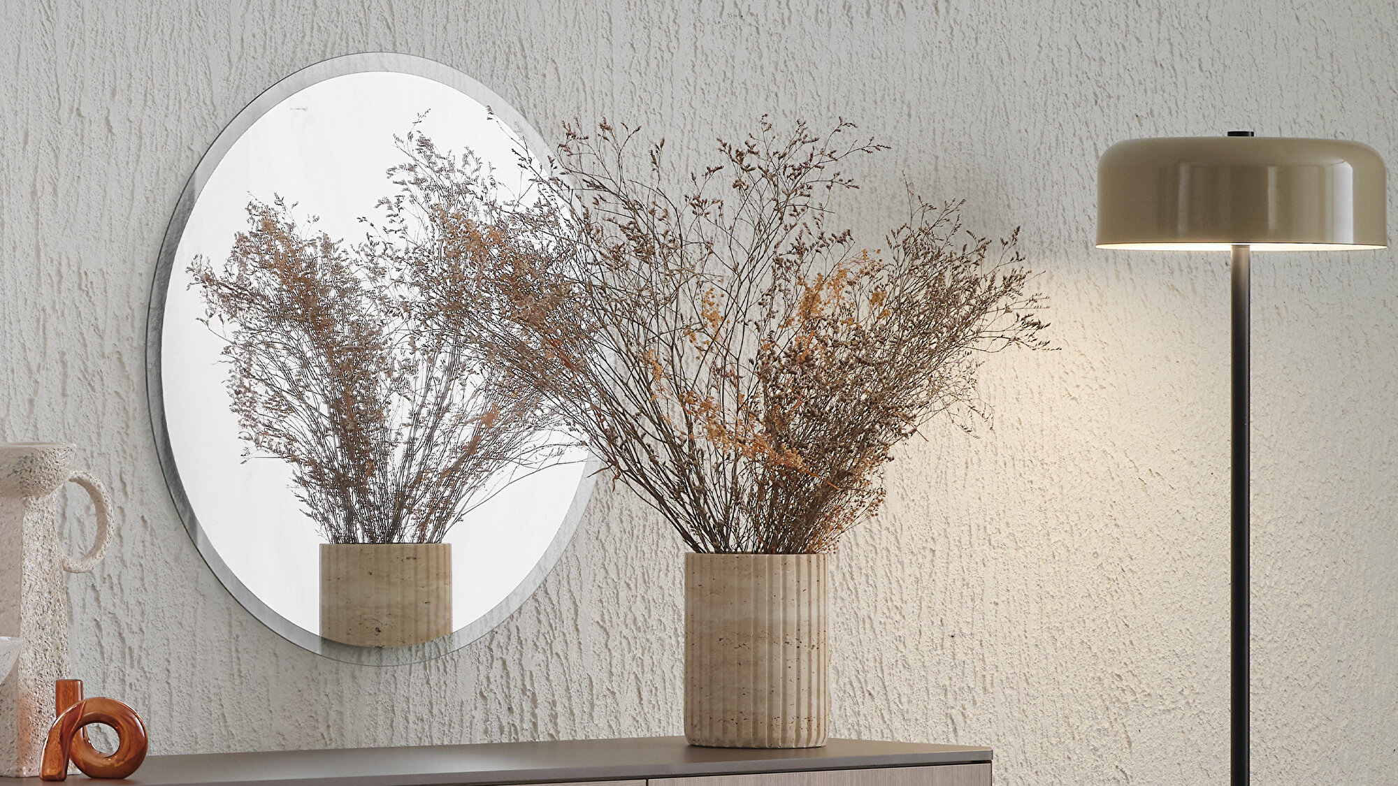 Зеркало Varena с круглой формой добавляет глубину в пространство, сочетая натуральный цвет и современный дизайн.