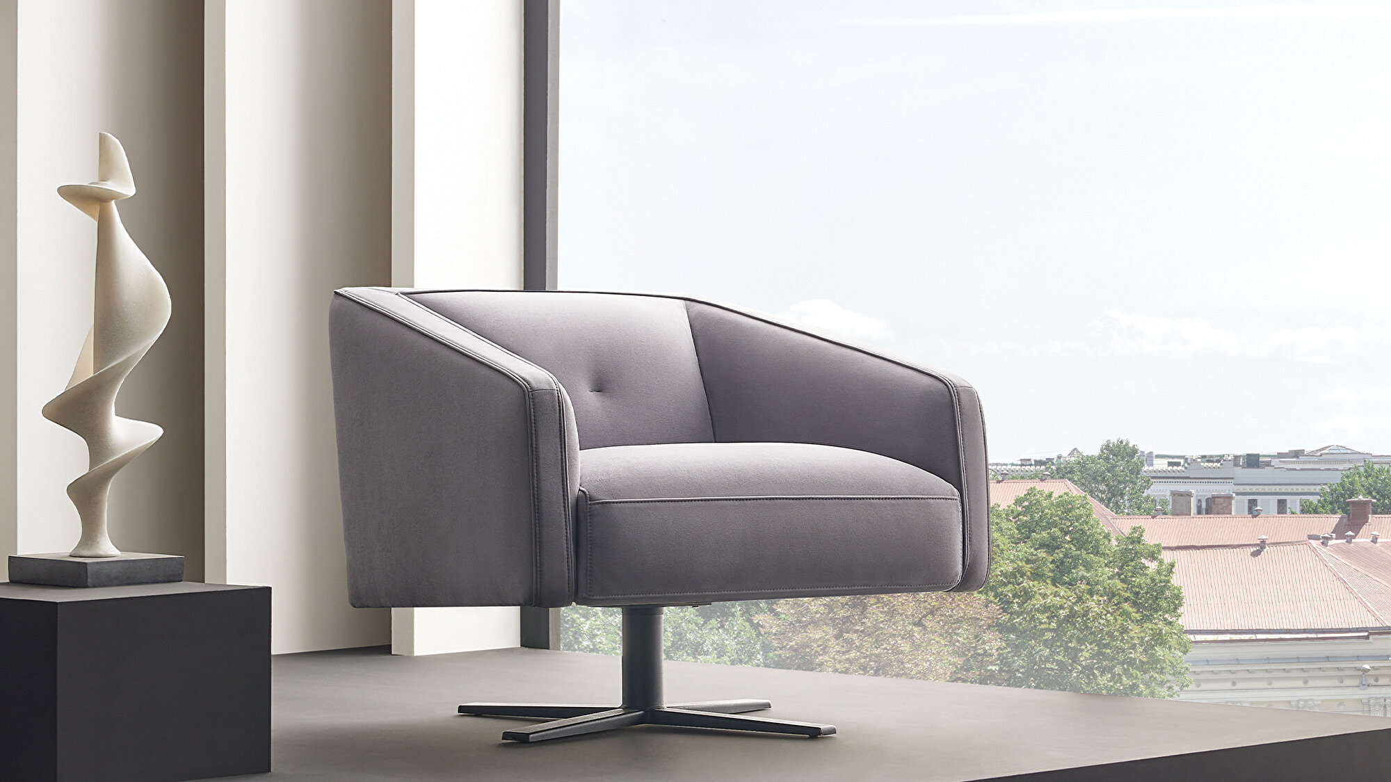 Кресло Victoria сочетает современный внешний вид с вечными дизайнерскими акцентами, предлагая многогранную эстетику и комфорт. Его широкое сиденье и универсальная конструкция делают его идеальным для сочетания с другими предметами. Черные металлические поворотные ножки придают креслу не только функциональность, но и стильный вид, делая Victoria ярким акцентом в коллекции Visions.