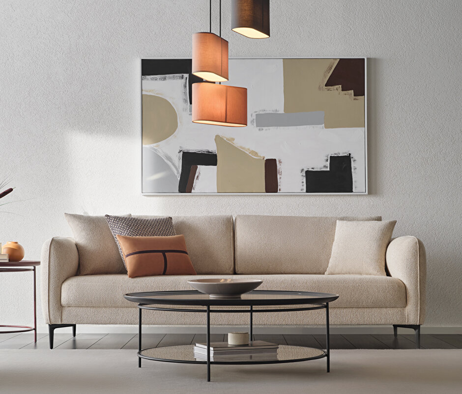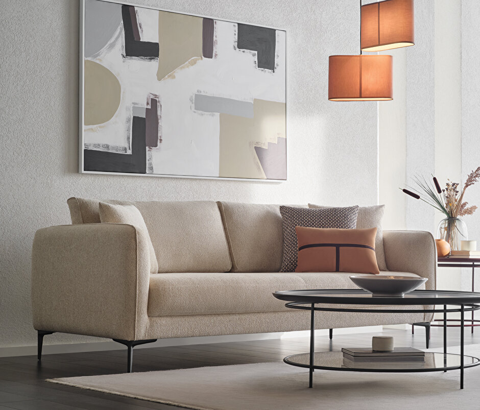 Трехместный диван, Льняная текстура, 17801 Бежевый